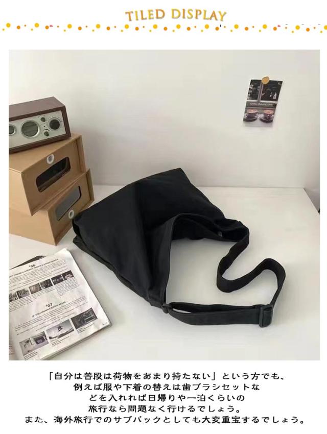 | 学生カバン メッセンジャーバッグ エコバッグ 旅行バッグ ショルダーバッグ 、本製品1つでマルチに活躍します。 どちらも 男女兼用 ショルダーバッグ としても使え、肩ベルト長さも調節可能。 ストラップは長さ調節も可能で、肩掛けにも斜め掛けにも対応。片方の肩が疲れたら反対側に掛け替えることもでき、移動の多い日も快適に過ごせます。 「自分は普段は荷物をあまり持たない」という方でも、例えば服や下着の替えは歯ブラシセットなどを入れれば日帰りや一泊くらいの旅行なら問題なく行けるでしょう。また、海外旅行でのサブバックとしても大変重宝するでしょう。 | |