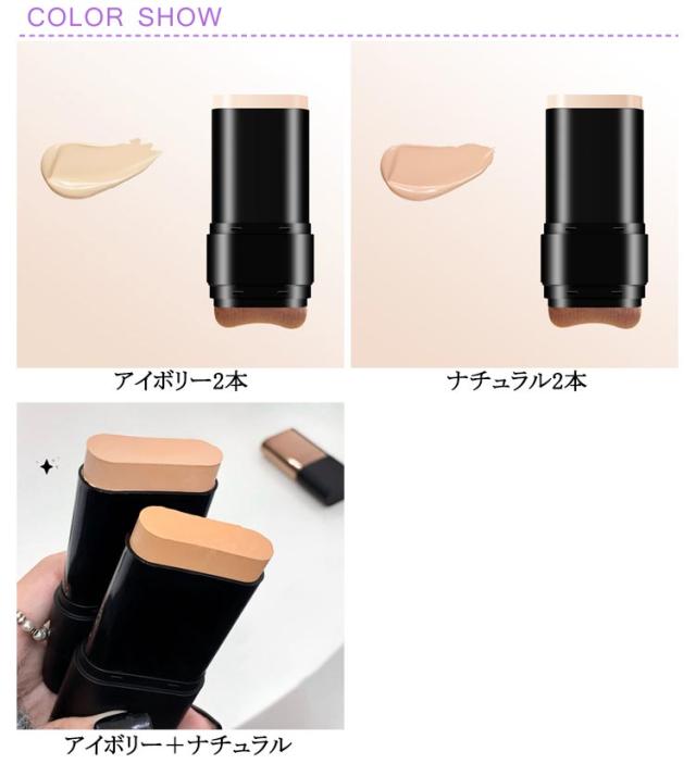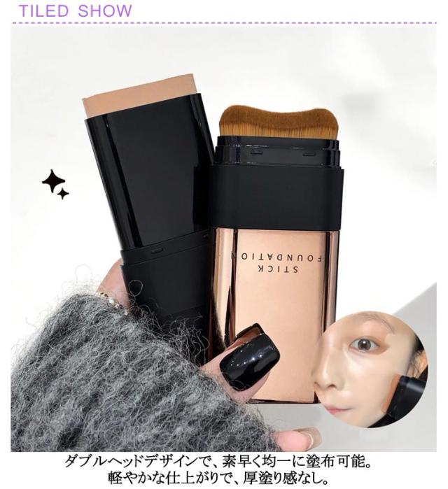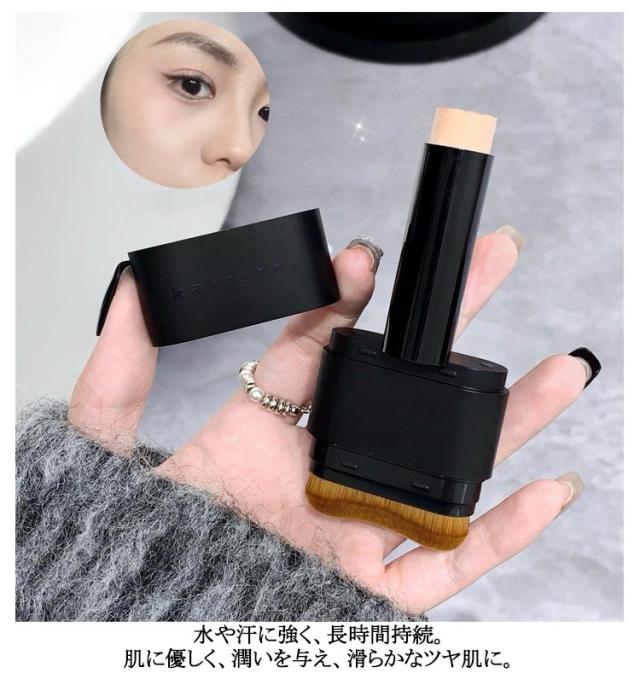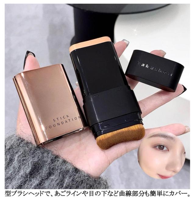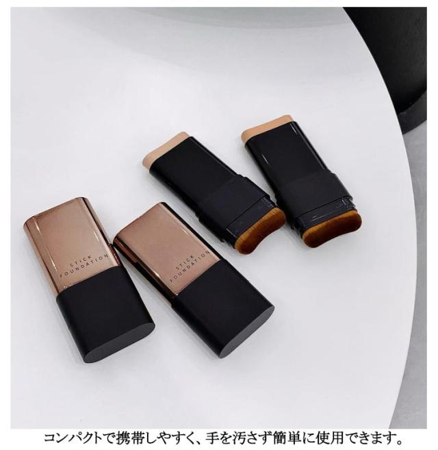 スティックファンデーション スティックファンデ スティックタイプ スティックファンデーション 手が汚れない 手軽 簡単 ファンデーション 携帯用 ベース ブラシ付き メイク道具 2in1 ナチュラル