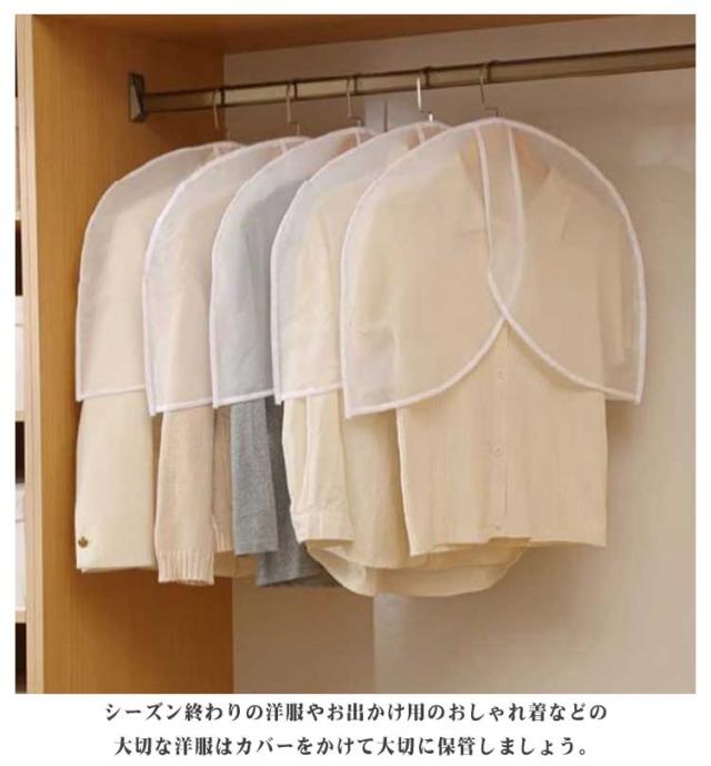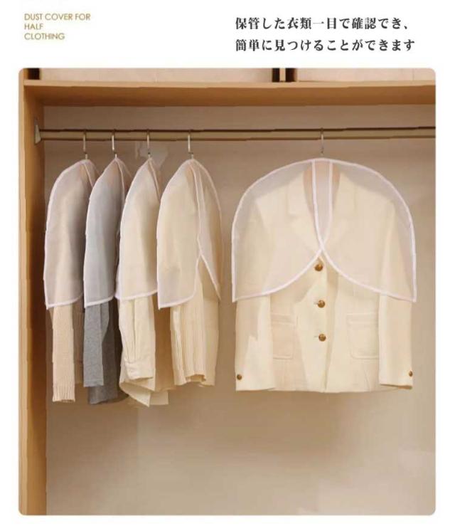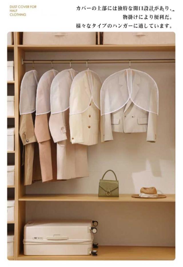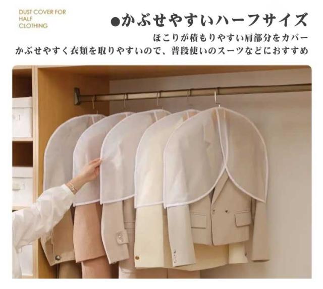 洋服カバー ハーフサイズ 衣類収納袋 防塵 衣類カバー ショート丈 ホコリ除け 洋服カバー 10枚組 半透明 コート スーツカバー ダストカバー 型崩れ防止 出し入れ簡単 ジャケット 洋服カバー ワンピース クローゼット ハンガー 衣替え