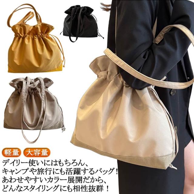巾着 ショルダーバッグ レディース ナイロン 軽量 大きめ ドローストリング ショルダーバッグ a4 大容量 おしゃれ 通勤バッグ トートバッグ 巾着バッグ マチあり 肩掛け バッグ 鞄 きれいめ トート 大人 かわいい カジュアル 通勤 通学