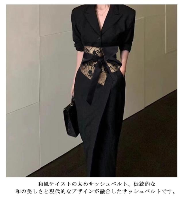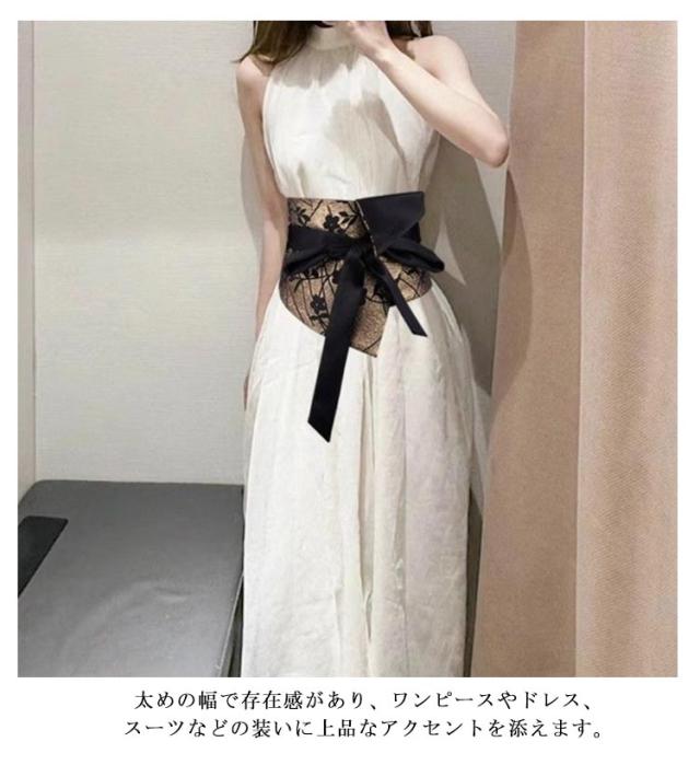 サッシュベルト 和風 ベルト ワンピース 着物 黒 太め ウエストベルト ドレス 飾り レディース ハイウェスト ウエストマーク スーツ サッシュベルト コルセット 帯 幅広 ベルト