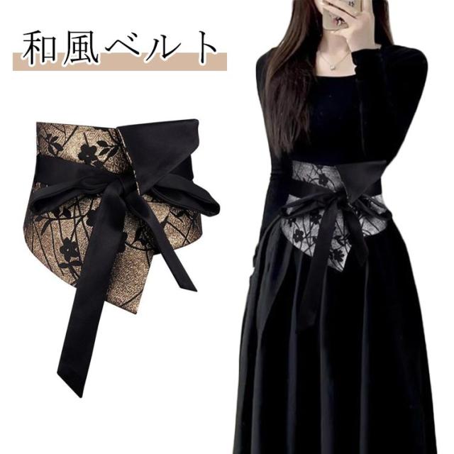 和風 レディース サッシュベルト 太め ドレス 着物 ワンピース ウエストベルト 和風ベルト ベルト ハイウェスト 黒 ウエストマーク スーツ 飾り コルセット 帯 幅広 ベルト