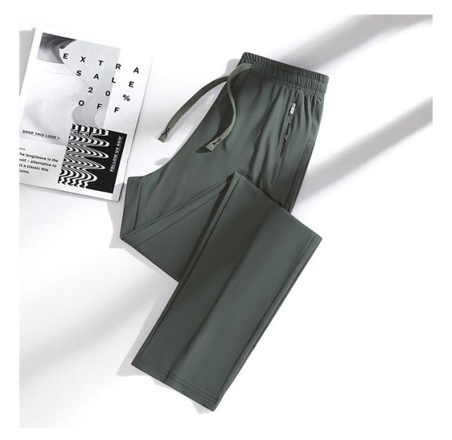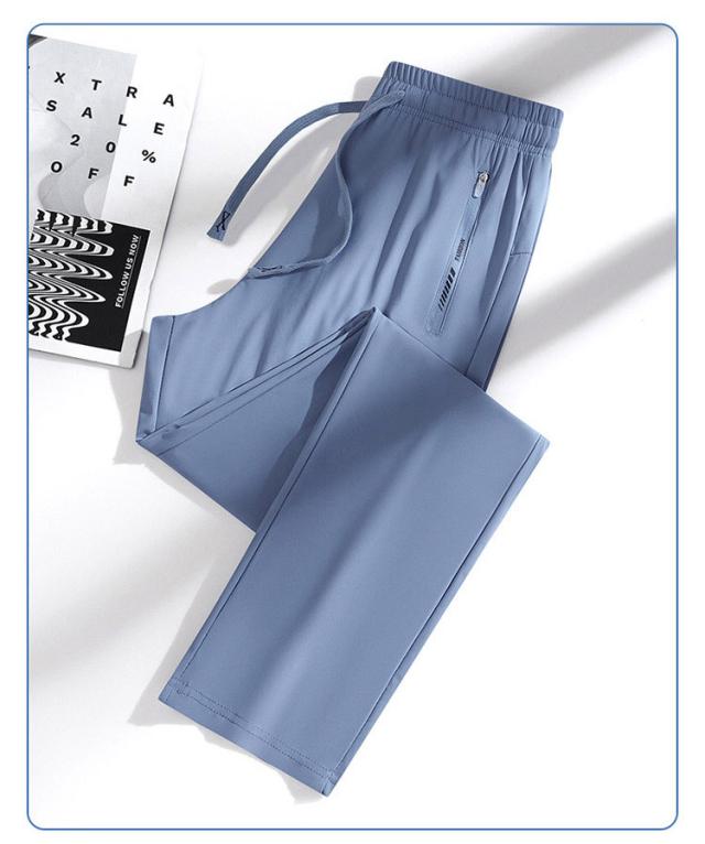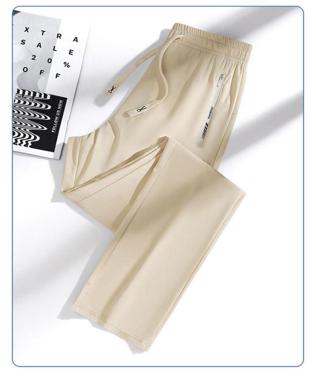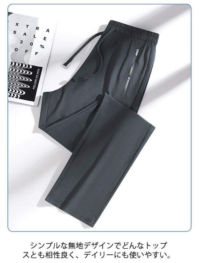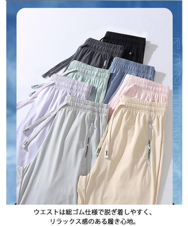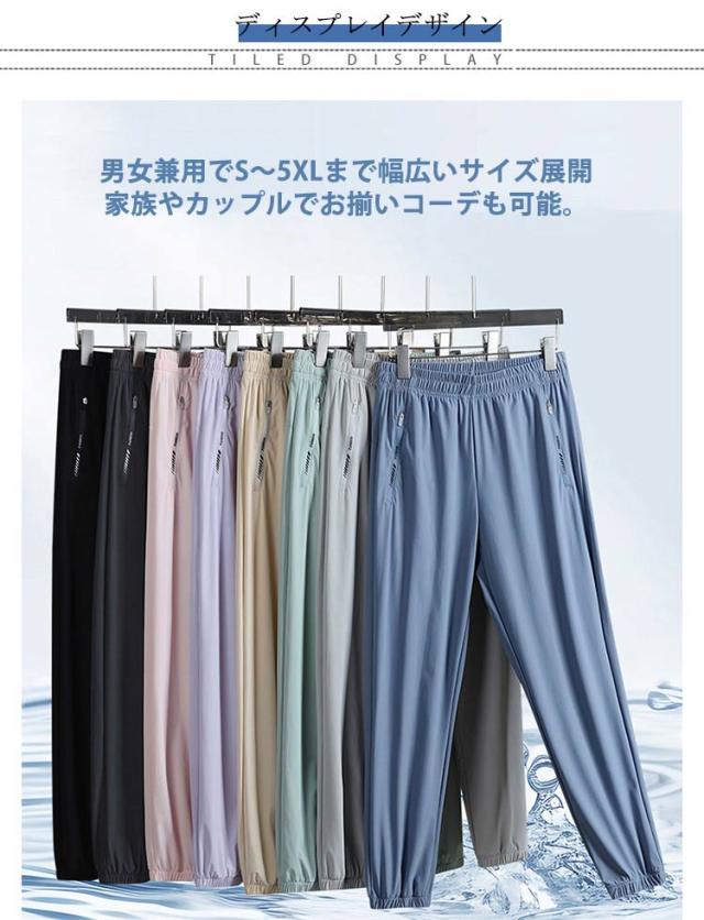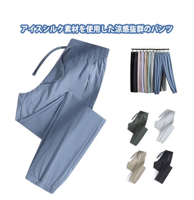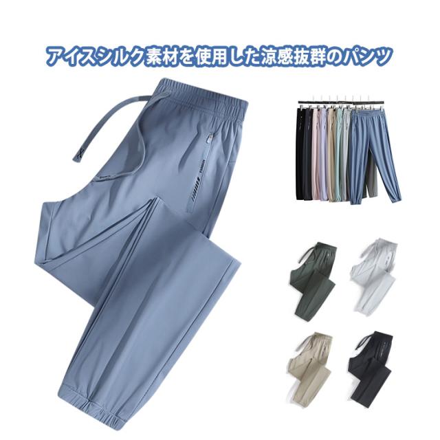 アイスシルク ジョガーパンツ レディース メンズ スポーツ 夏 トレーニング サマーパンツ アイスシルク ストレートパンツ ワイドパンツ 冷感パンツ 部屋着 リラックス 通気性 薄手 体型カバー 無地 ウエストゴム ポケット付き
