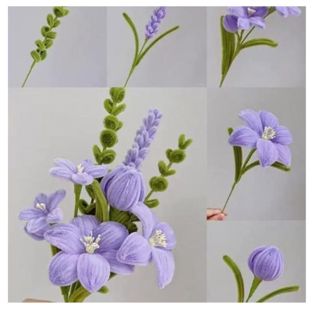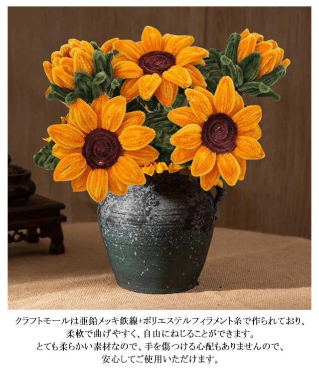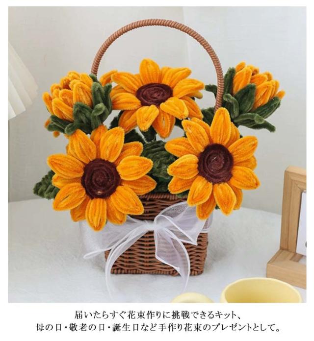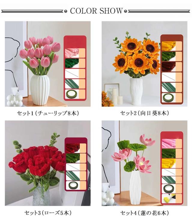 全7種類セット チューリップ 花束 手作りキット モールフラワー カラーモール セット 向日葵 全7種類セット 造花 ローズ 百合 蓮の花 工作 モールアート 手芸モール 材料 曲げ可能 学校 手芸 DIY プレゼント