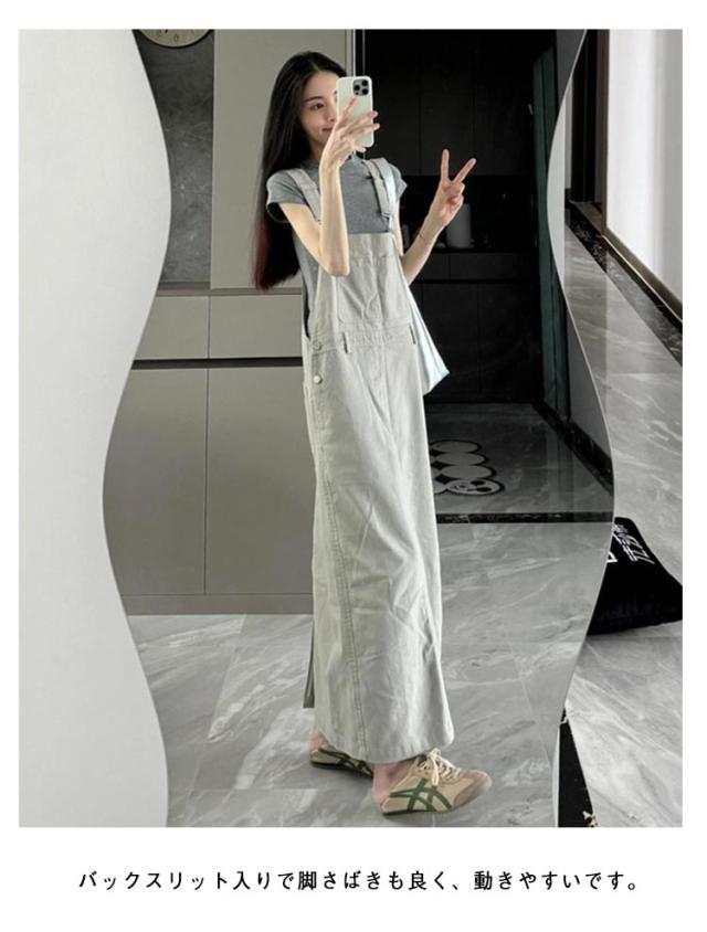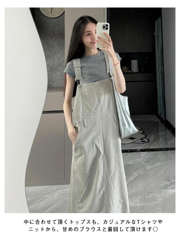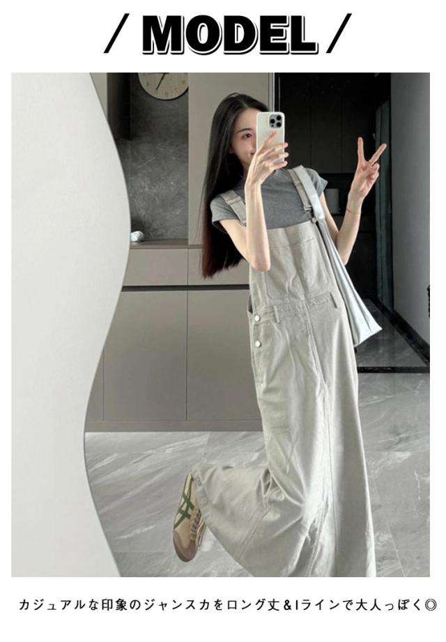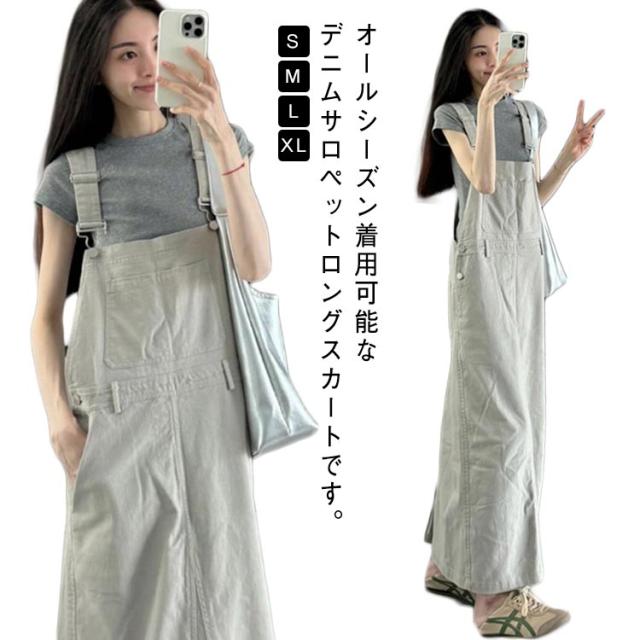 スカート サロペットスカート ロング ジャンスカ デニム サロペット デニム ジャンパースカート ワンピース 春夏秋冬 大人 オーバーオール オールインワン レイヤード 重ね着 デニム カジュアル ゆったり ポケット