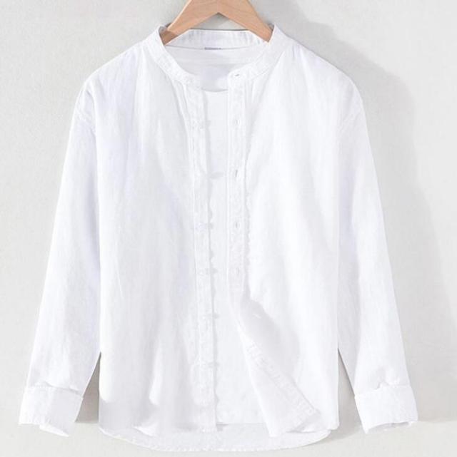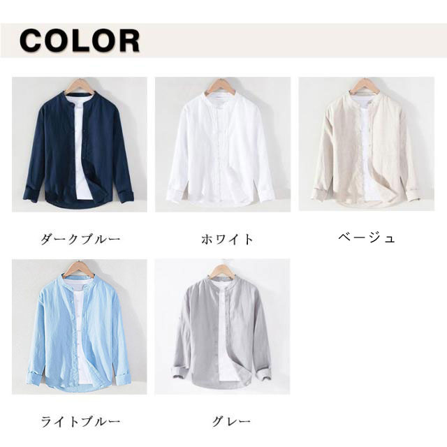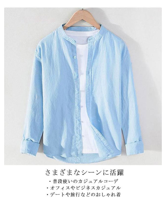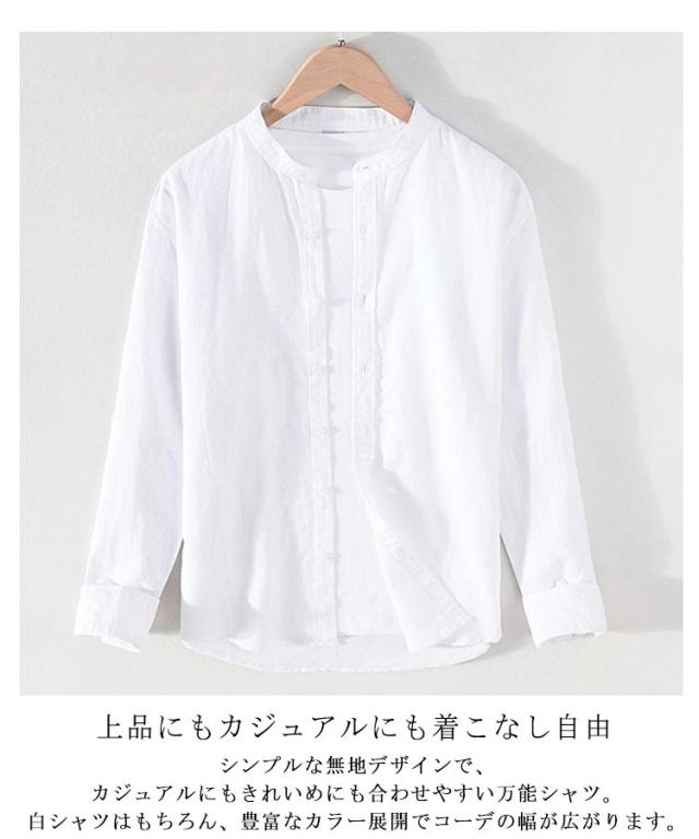 トップス 長袖 シャツ 長袖シャツ ノーカラーシャツ 長袖シャツ 白シャツ 綿シャツ コットン ブラウス メンズ 男性 綿 シャツブラウス 開襟シャツ 立ち襟 大きいサイズ 春 秋