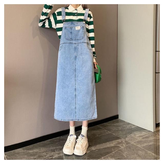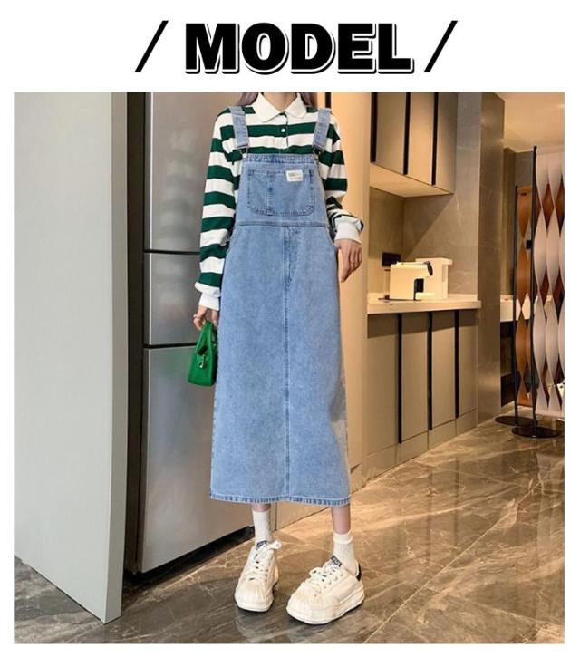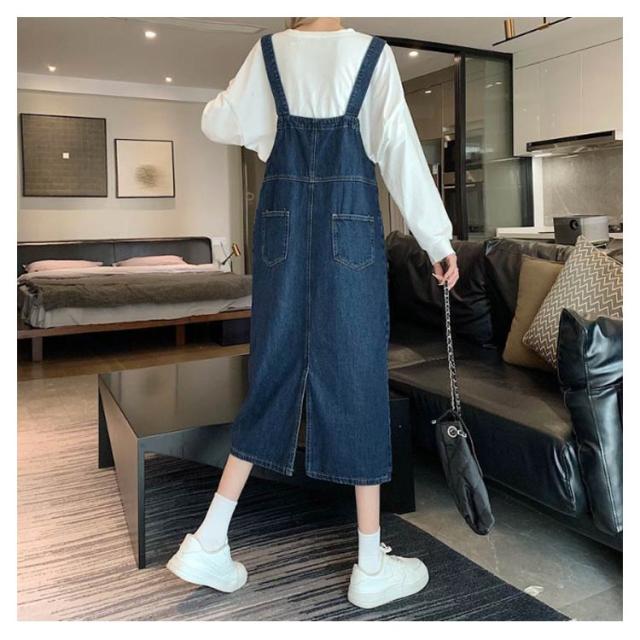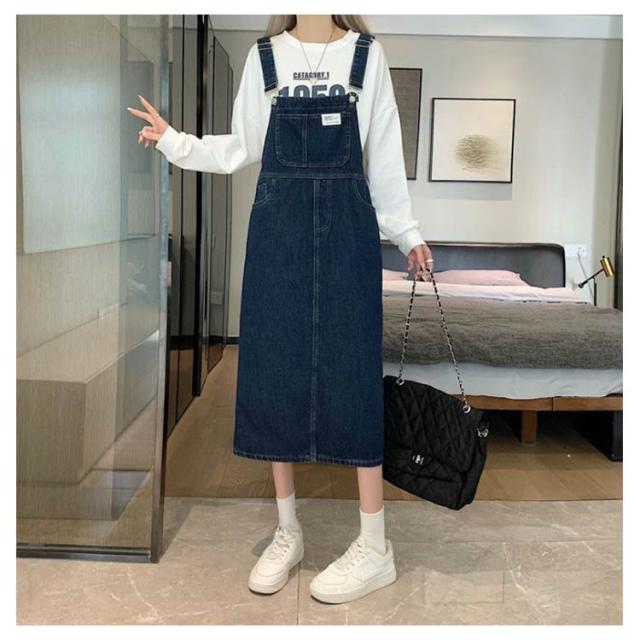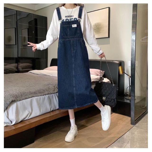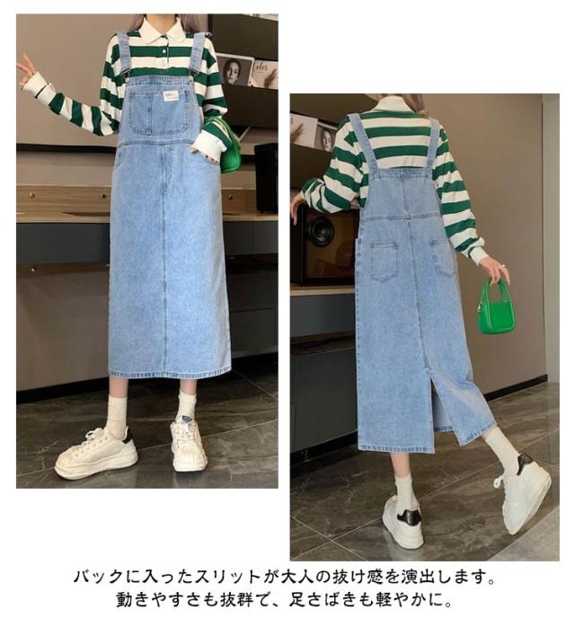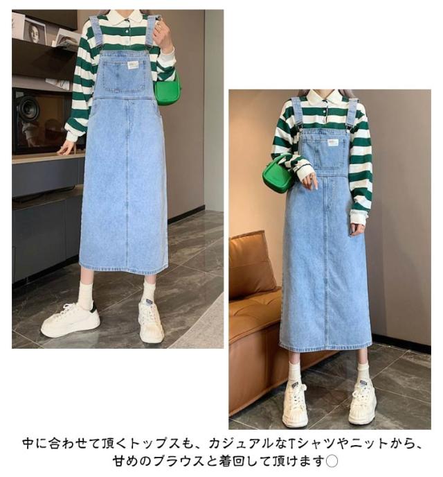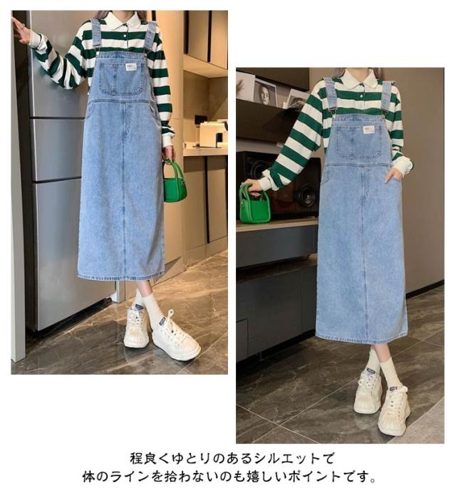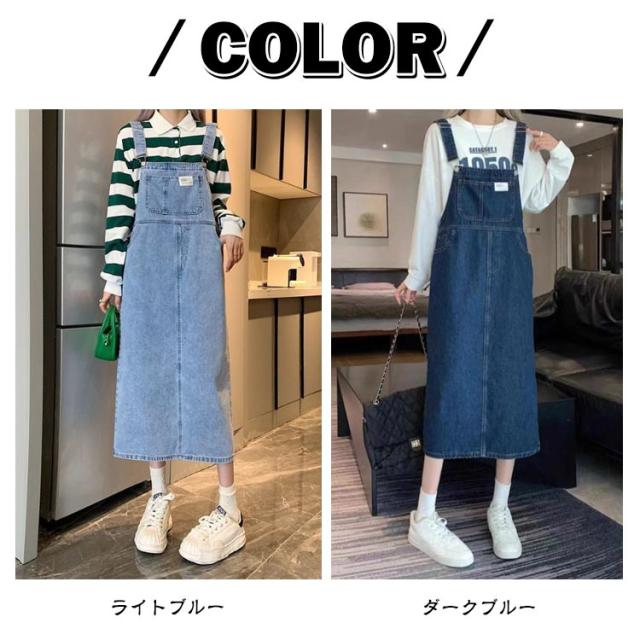 ジャンパースカート デニム デニムサロペットスカート サロペット ジャンスカ レディース デニム 体型カバー ミモレ丈 膝下丈 サロペットワンピース ゆったり デニムワンピース 肩紐調節 スクエアネック 春夏秋冬 オーバーオール オールインワン 大人 カジュアル