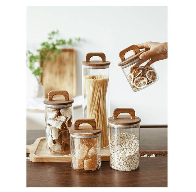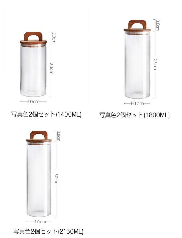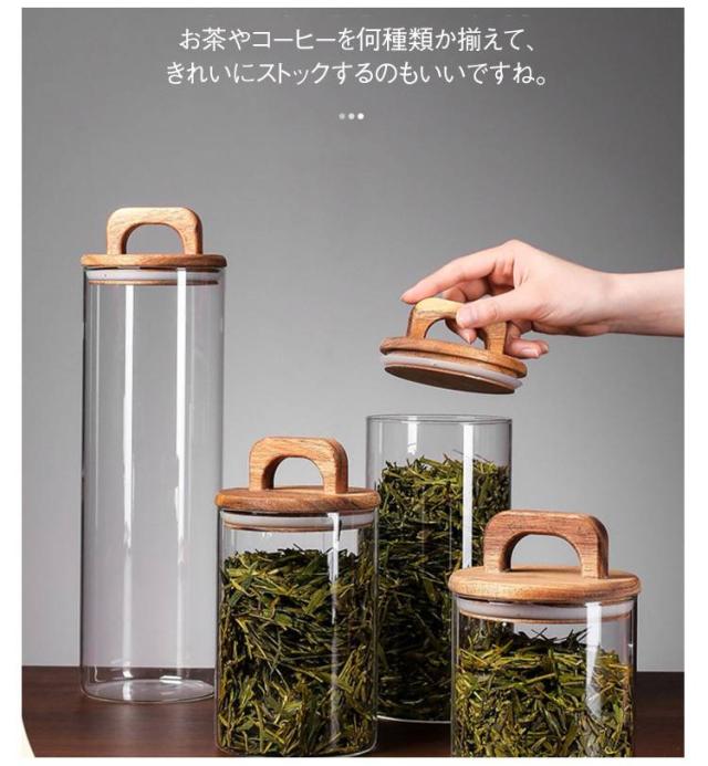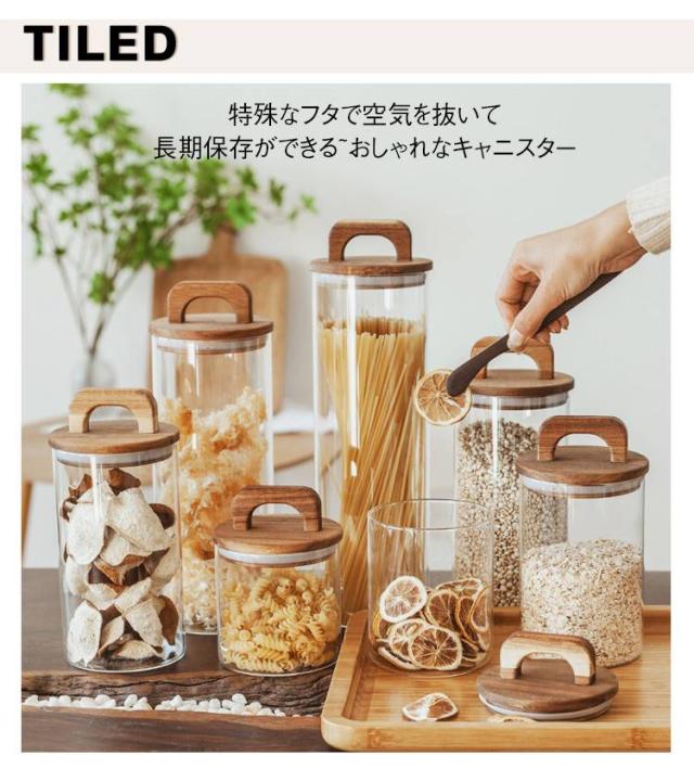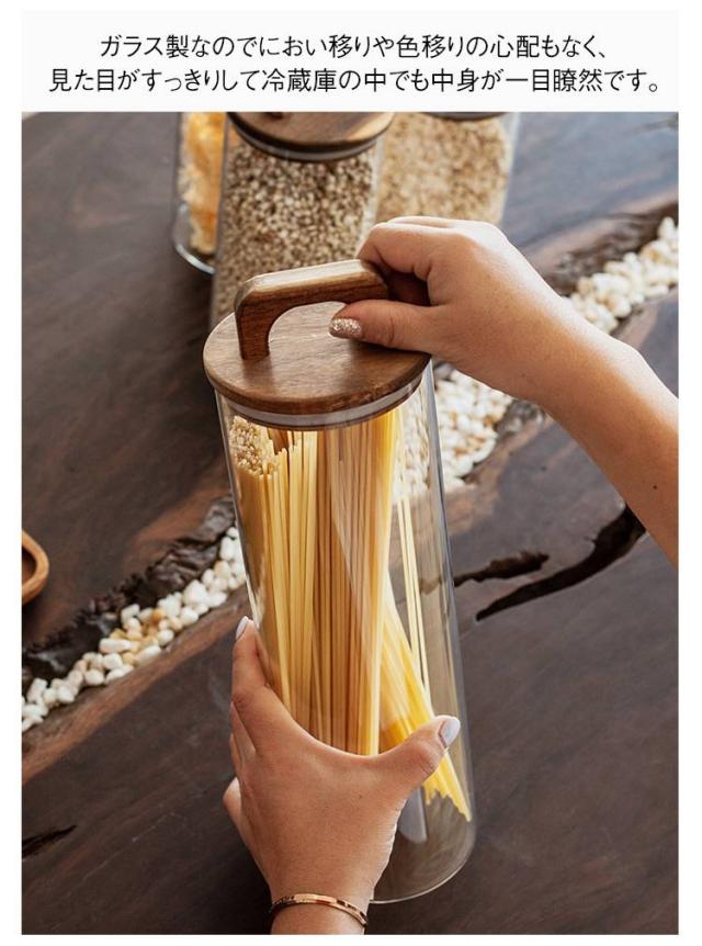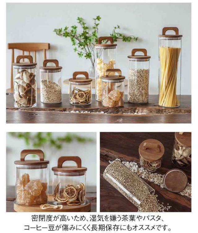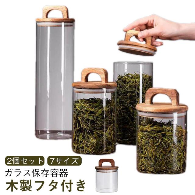 | 【木製フタ付き ガラス保存容器 2個セット 7サイズ】 特殊なフタで空気を抜いて長期保存ができる~おしゃれなキャニスター 密閉度が高いため、湿気を嫌う茶葉やパスタ、コーヒー豆が傷みにくく長期保存にもオススメです。 空気がない分、から揚げや梅酒作り、漬け物などの漬け料理にも最適です。 ガラスで透明なので中身の残り量がわかりやすいです。 ガラス製なのでにおい移りや色移りの心配もなく、見た目がすっきりして冷蔵庫の中でも中身が一目瞭然です。 砂糖などの調味料をはじめ、ジャム、ドライフルーツ、コーヒー豆、ショートパスタなど、の食材保存にお使いいただけます。 お茶やコーヒーを何種類か揃えて、きれいにストックするのもいいですね。 | |