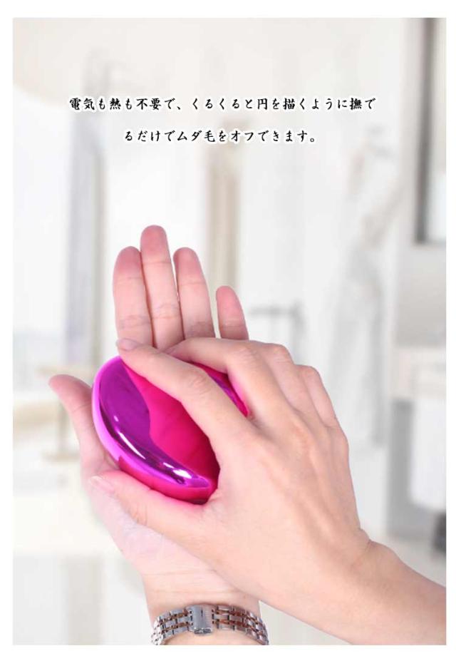 | 痛くなく簡単にムダ毛を取るナノガラス脱毛器。 毛先を丸くカットするため、チクチクせず、古い角質も同時に取り除くので、使用後はツルリとした肌触りに仕上げます。 手にフィットするユニークな形状は、細かい力加減の調節もラクラク。コンパクトで軽量なので、旅行や外出時の携帯にも便利です。 電気も熱も不要で、くるくると円を描くように撫でるだけでムダ毛をオフできます。 肌を傷つけにくい設計なので、敏感肌の方やお子さまでも安心して使用できます。 水洗いOK、繰り返し使えて経済的使用後はサッと水洗いするだけの簡単お手入れ。面倒な後処理が不要で、いつでも清潔に保てます。 | |
