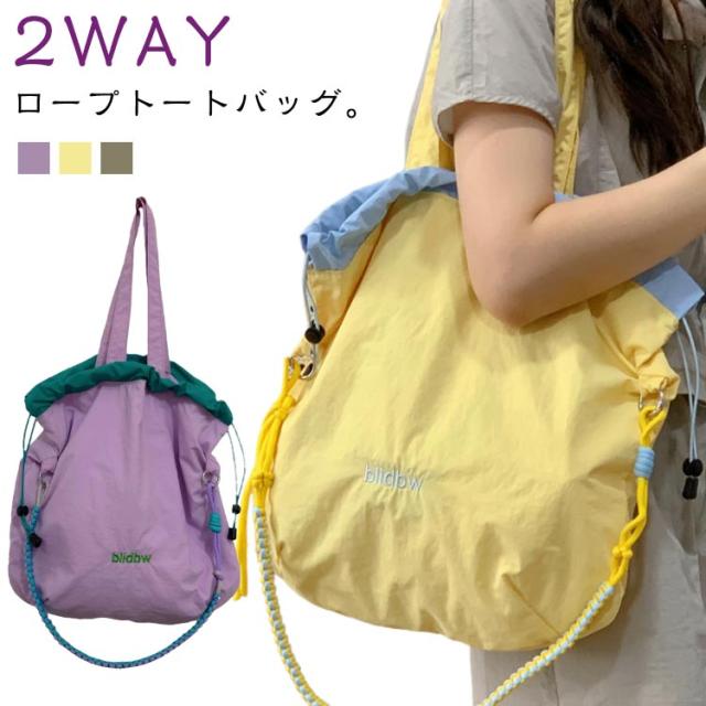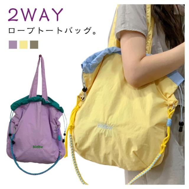 | 2WAYロープトートバッグ。 上質な素材を使用して、優れた撥水性能を確保するだけでな く、耐摩耗性や耐久性も向上させており、軽量でお手入れが 簡単なので、さまざまなシーンでご利用いただけます。 2WAY!トートバッグとしてだけでなく、ショルダーバッグや斜め掛けバッグとしても利用可能です。 たっぷり収納!メインルームは開口も大きく開くので、見た目以上に出し入れもしやすく、A4の書類や水筒、折りたたみ傘などの生活な必要品も余裕で収納できます。 巾着デザイン!開口部には丈夫なが通されており、両端を引っ張る だけで簡単に開閉が可能。中身の安全性を保ちつつ、サッと中の物を取り出せる便利さが魅力です。 ショルダーストラップ付き!シーンに合わせてショルダーバッグとしても、トート バッグとしても使える、マルチな使い心地が特徴です。 | |