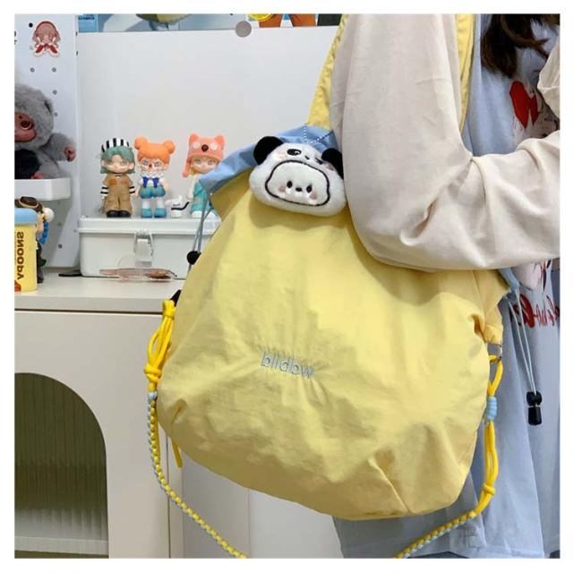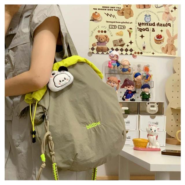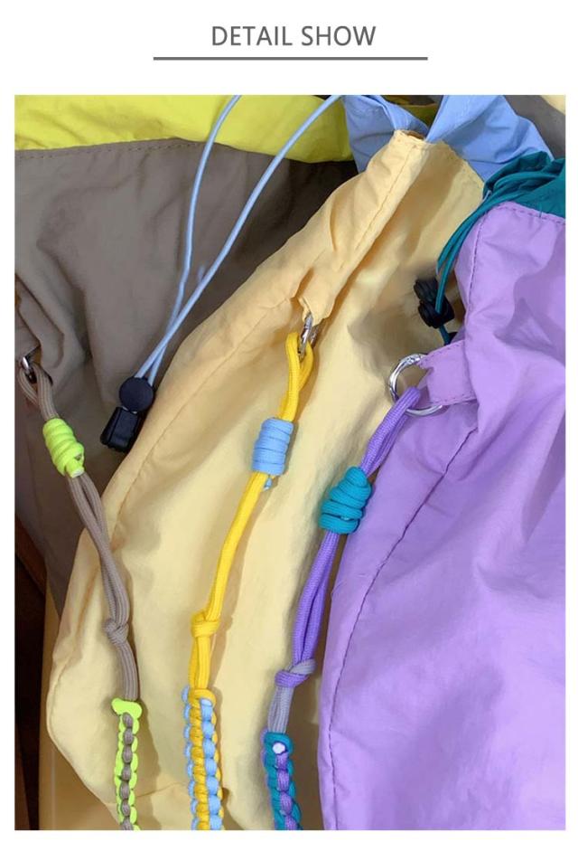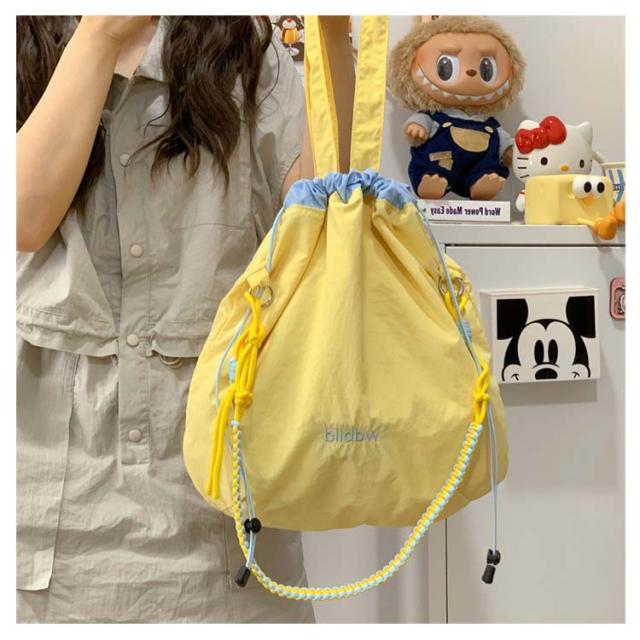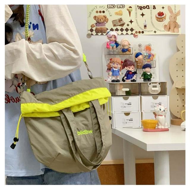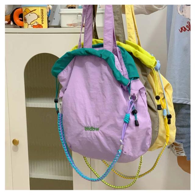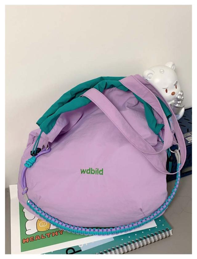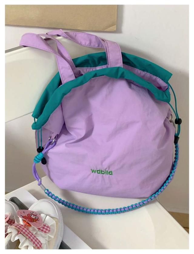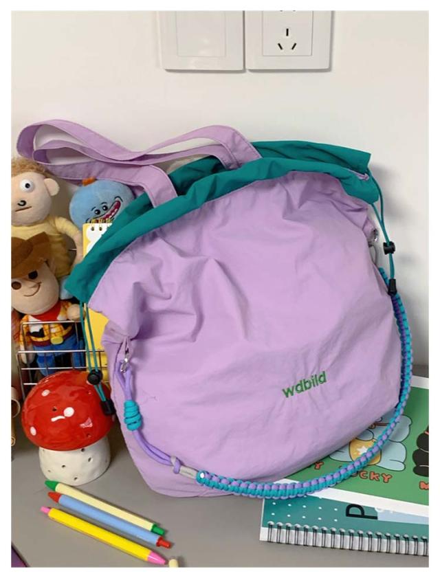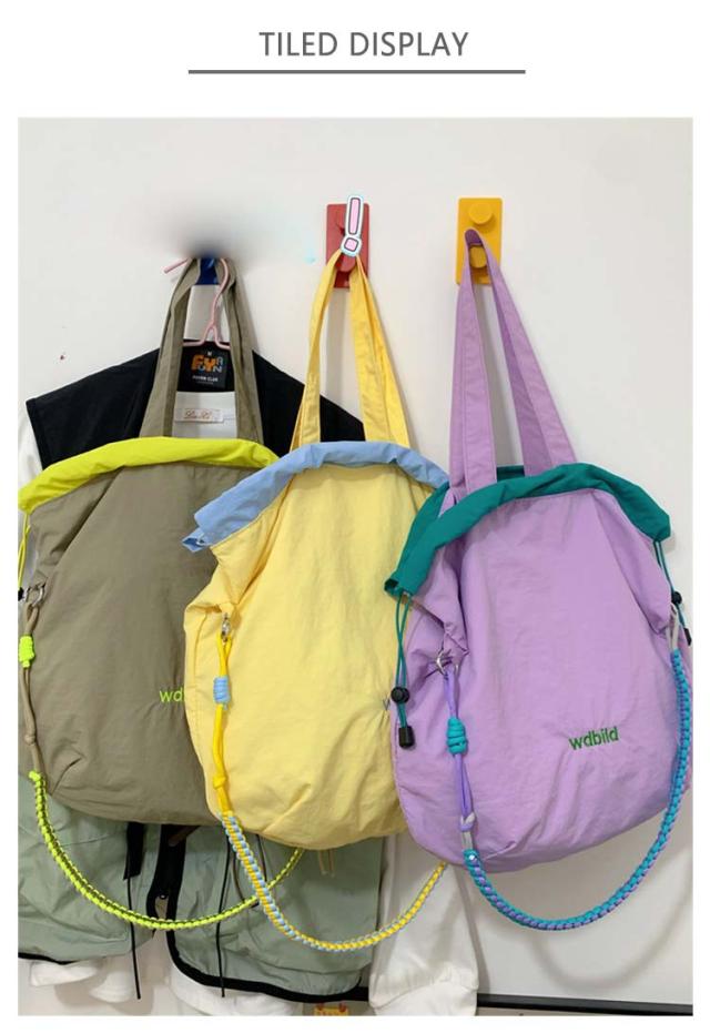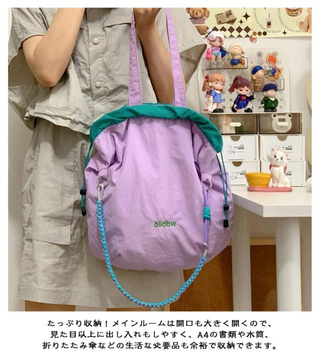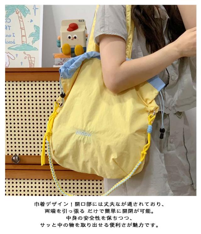 ハンドバッグ 軽量 ショルダーバッグ 鞄 2way バッグ 撥水加工 刺繍 デザイン 可愛い A4収納可能 レディース ロープトートバッグ 巾着バッグ 肩がけ ドロストバッグ おしゃれ お買い物 便利 2way ハンドルロープ 持ち手 カジュアル 配色 森ガール プレゼント