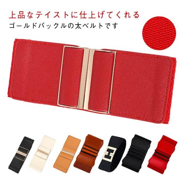 ストレッチベルト ゴールド ストレッチベルト レディース 金 コルセットベルト パーティードレス サッシュベルト チュニック ワンピース かわいい エレガント ス四角 幅広 キャメル レッド ホワイト バックル ワンピ 可愛い ギフト 太ベルト ゴムベルト 着痩せ