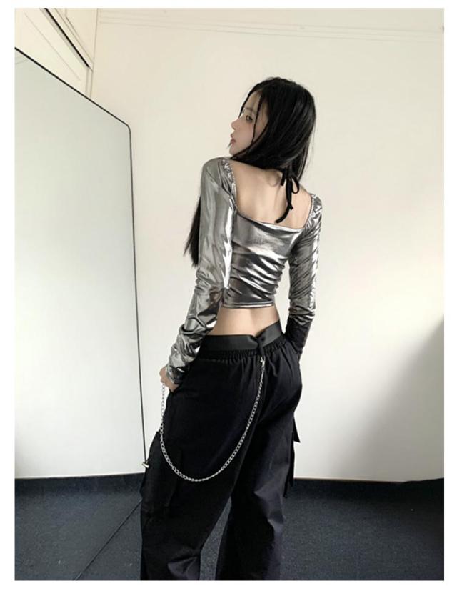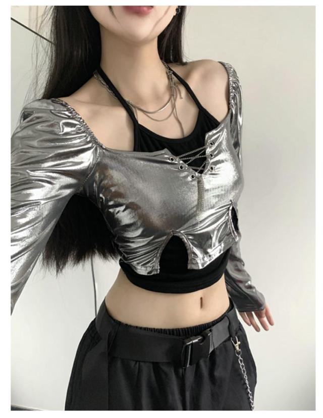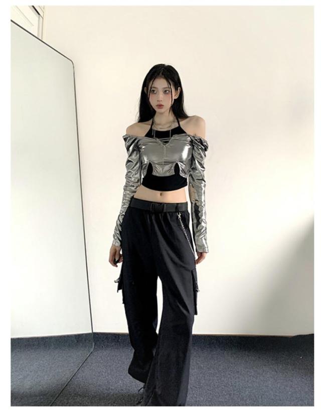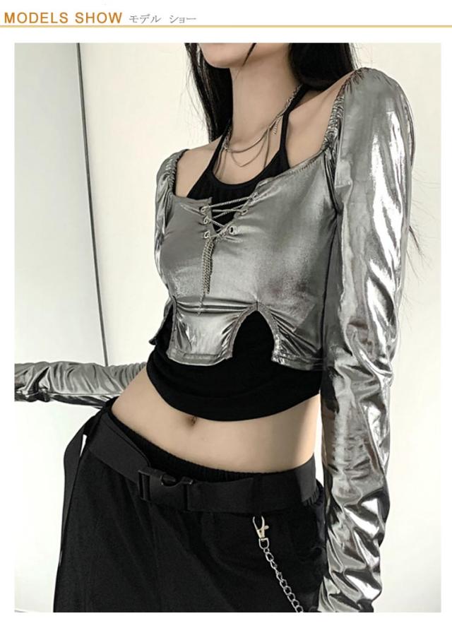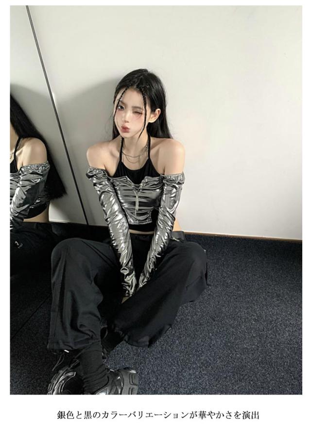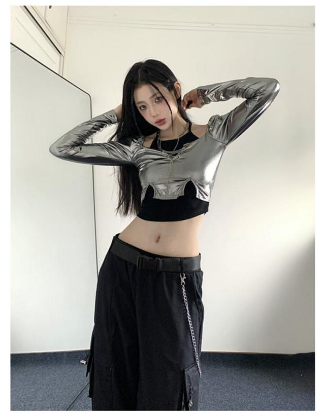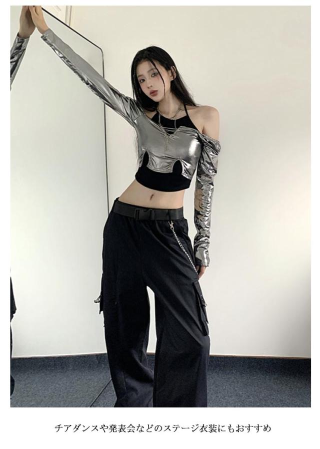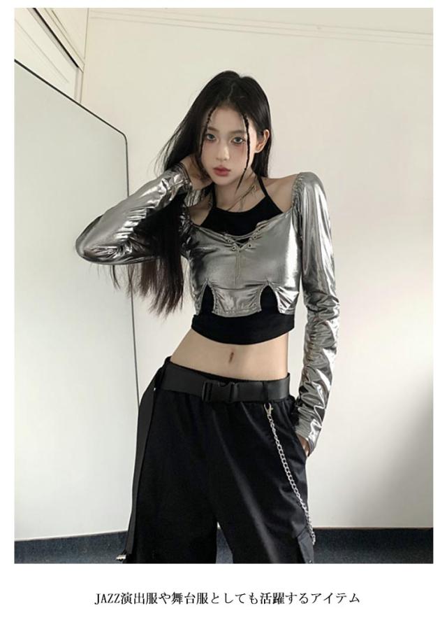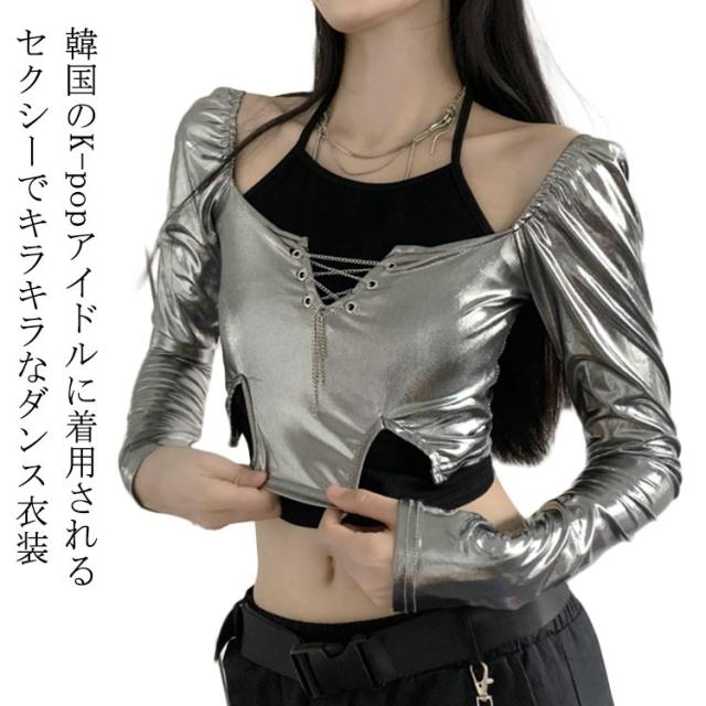 大人ダンス衣装 衣装 長袖 大人ダンス衣装 イベント ダンスチーム レディース 銀色 ヒップホップ ジャズダンス トップス 個性 キャミソール ヒップホップ 発表会 韓国 ストリート系 原宿系 へそ出し 春 夏 秋 S M L