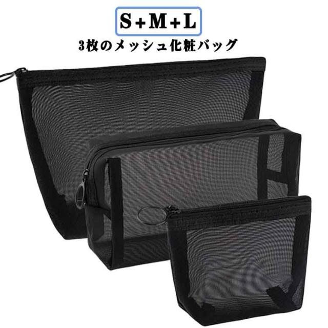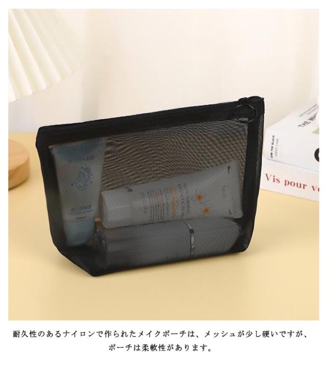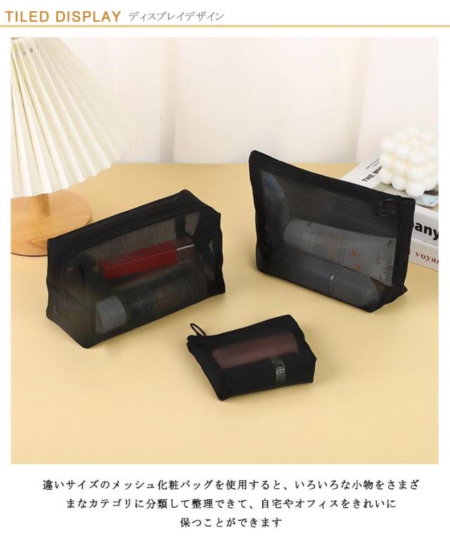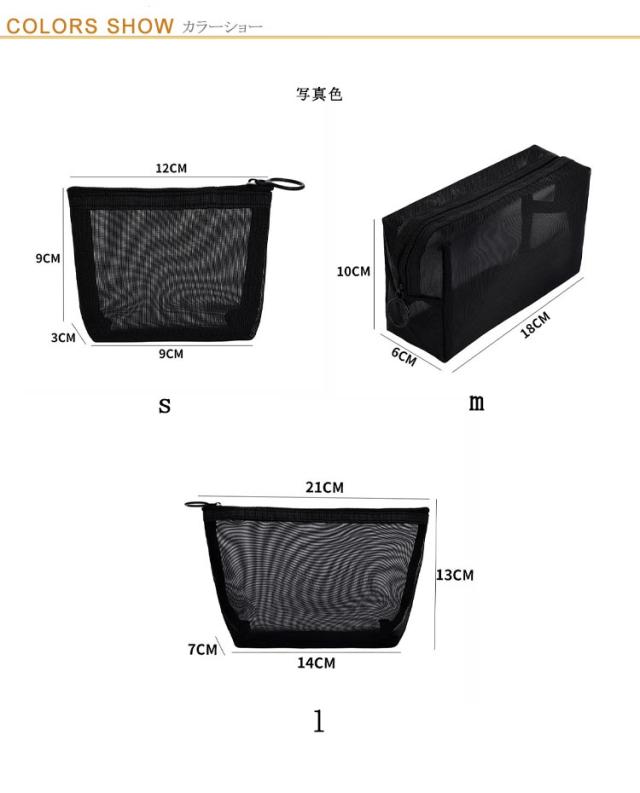 薄型 旅行 メッシュポーチ 中 黒 収納ポーチ ポーチ コンパクト 大 メッシュ 化粧品収納 化粧ポーチ トラベルポーチ メイクポーチ コスメ収納 3個セット 小物入れ 小 軽量 大容量 収納便利 可愛い 出張