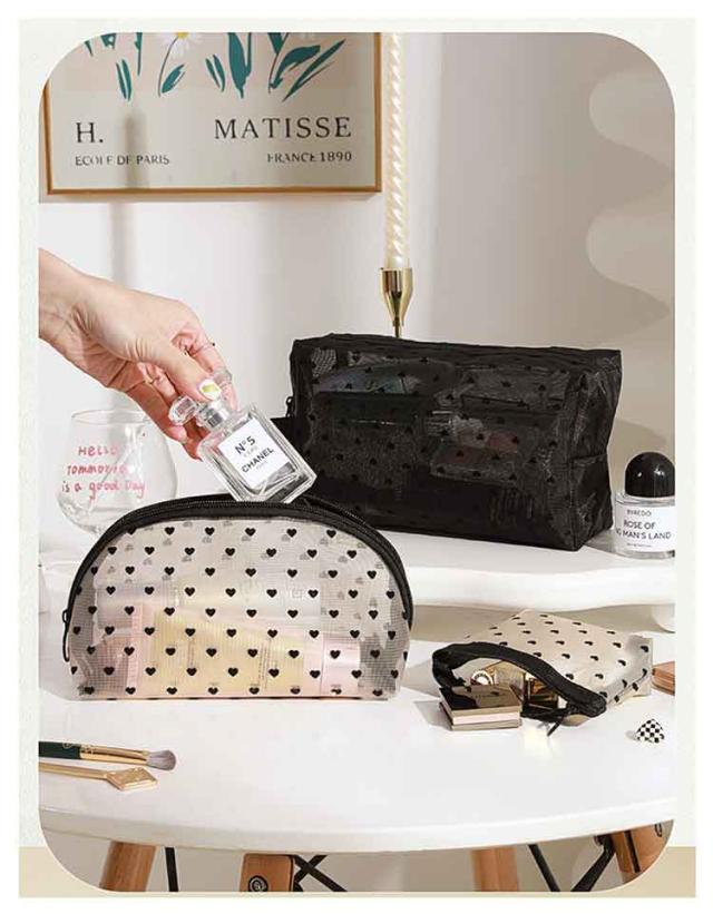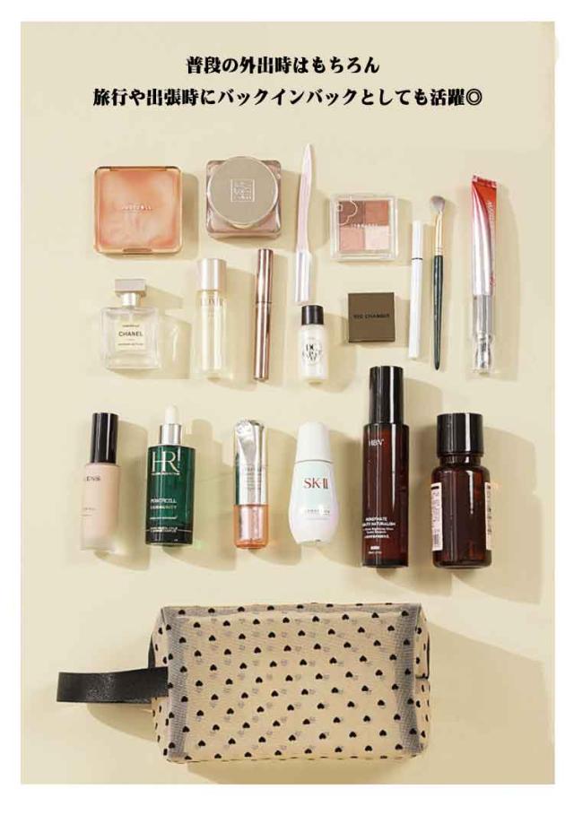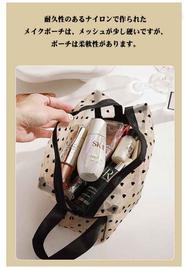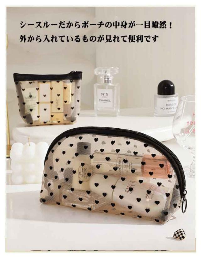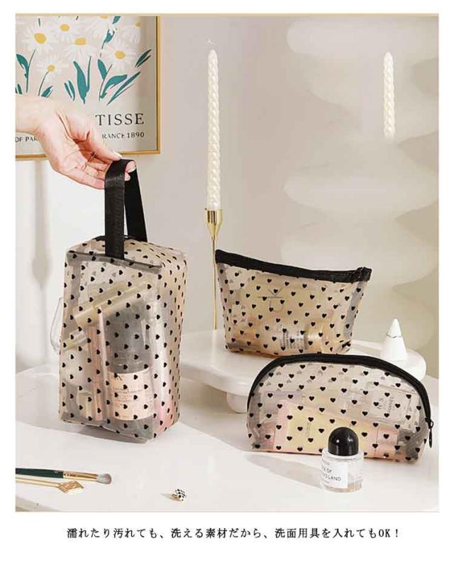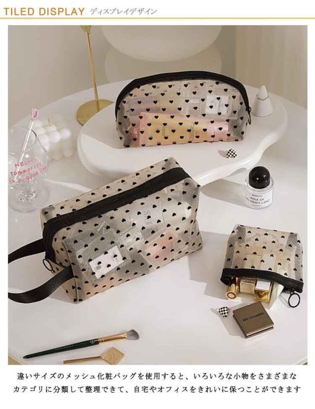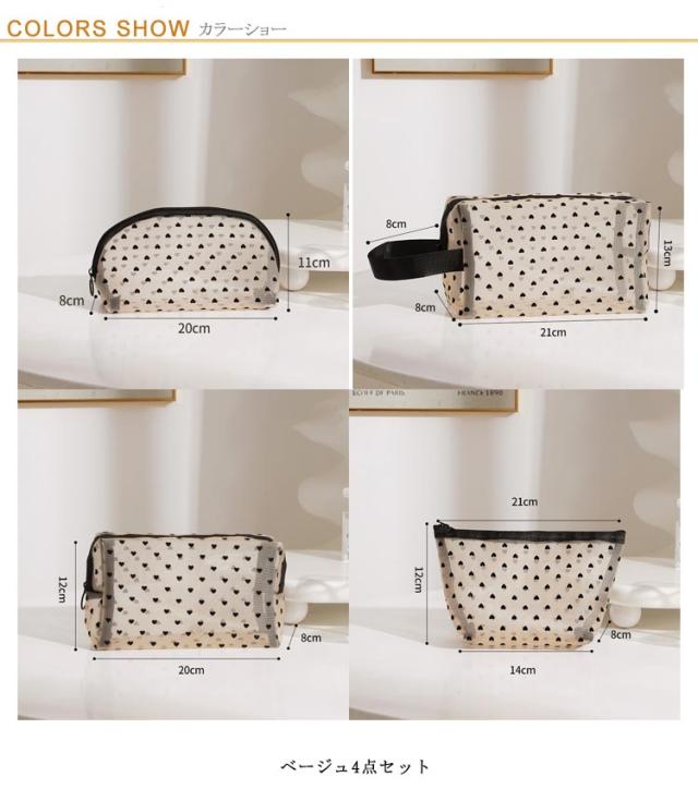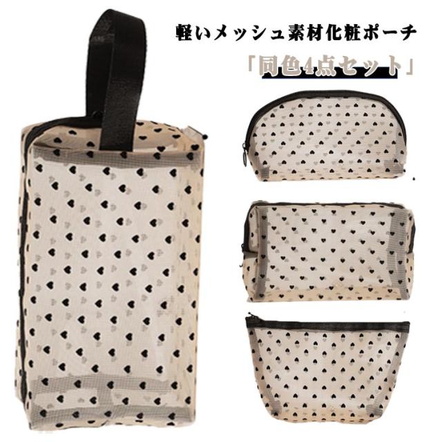 メッシュ 化粧ポーチ ポーチ クリアポーチ 4点セット ポーチ メッシュポーチ 4点セット ハート 透明感 軽量 トラベルポーチ メイクポーチ コンパクト ハート柄 コスメポーチ 大容量 収納便利 可愛い 出張 旅行 ジム 大 中