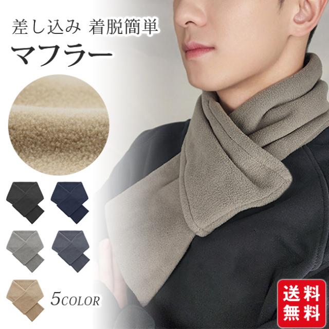 ミニマフラー マフラー メンズ レディース 薄手 差し込み 差込み ミニ ショート 短め ネックウォーマー ストール 無地 冬 着脱簡単 洗える 暖か おしゃれ