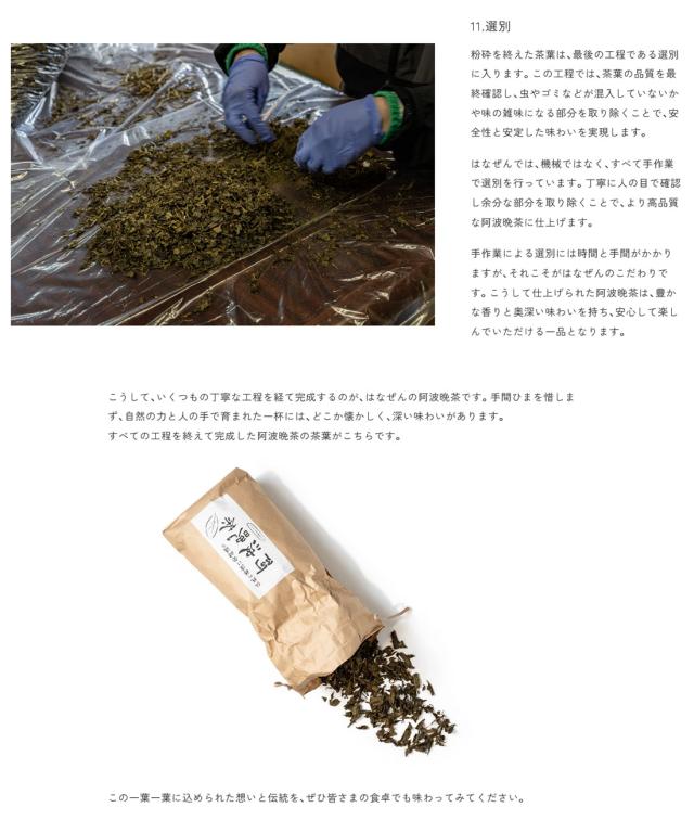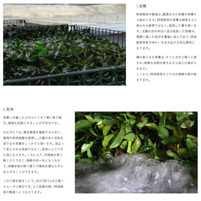自社工場で生産した阿波晩茶の茶葉のみを使用し、阿波晩茶の風味を最大限に感じられます。