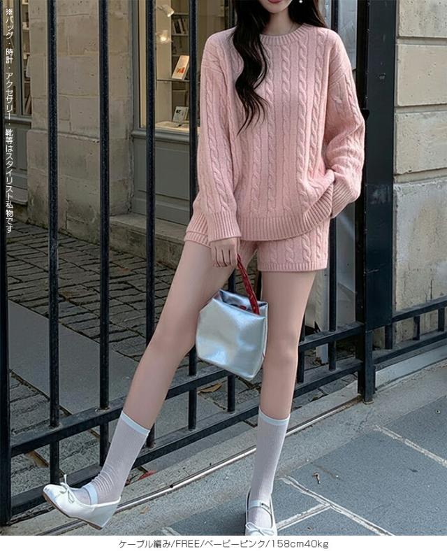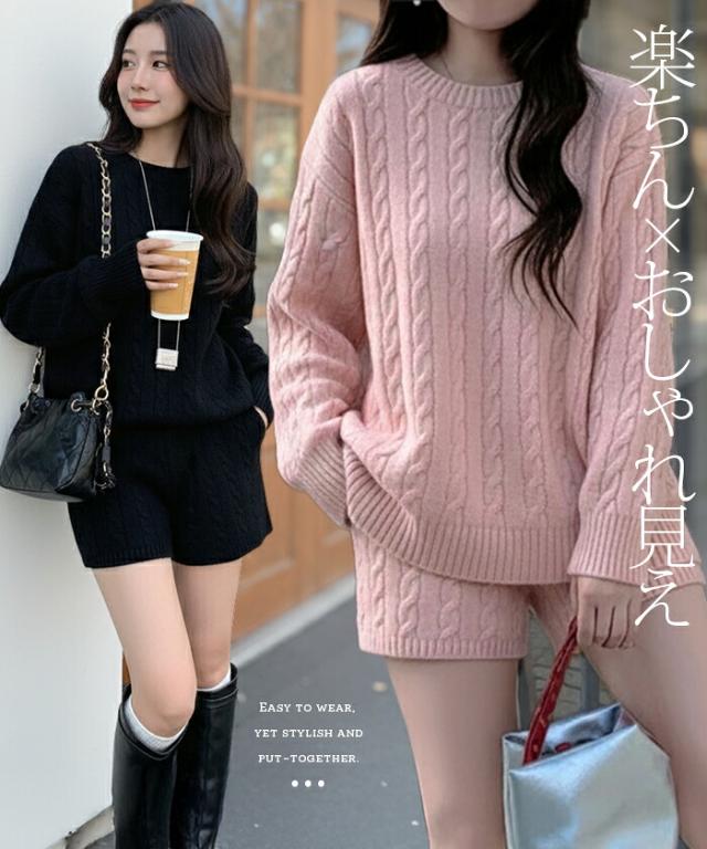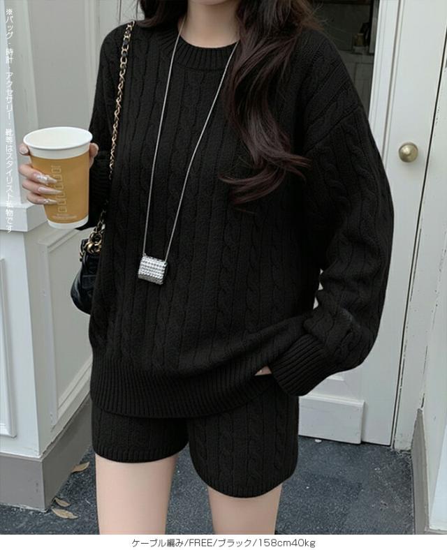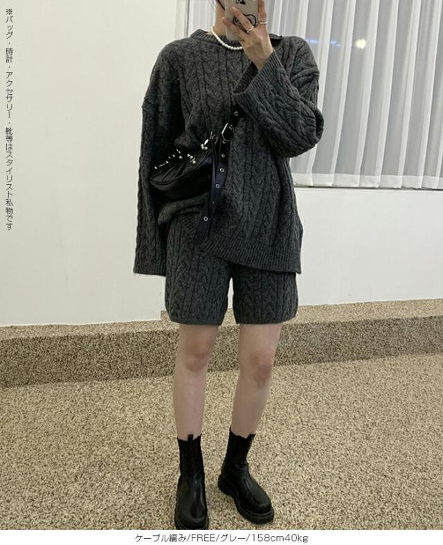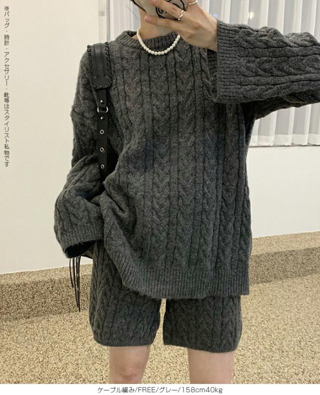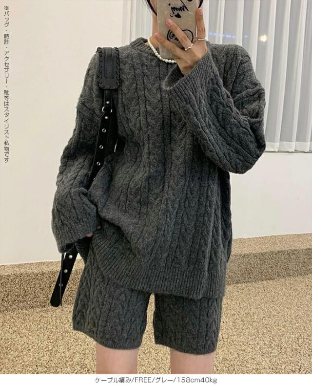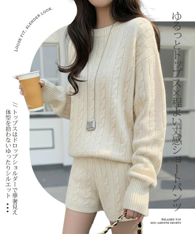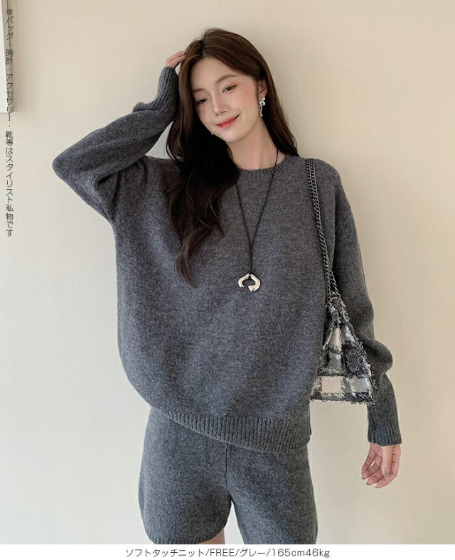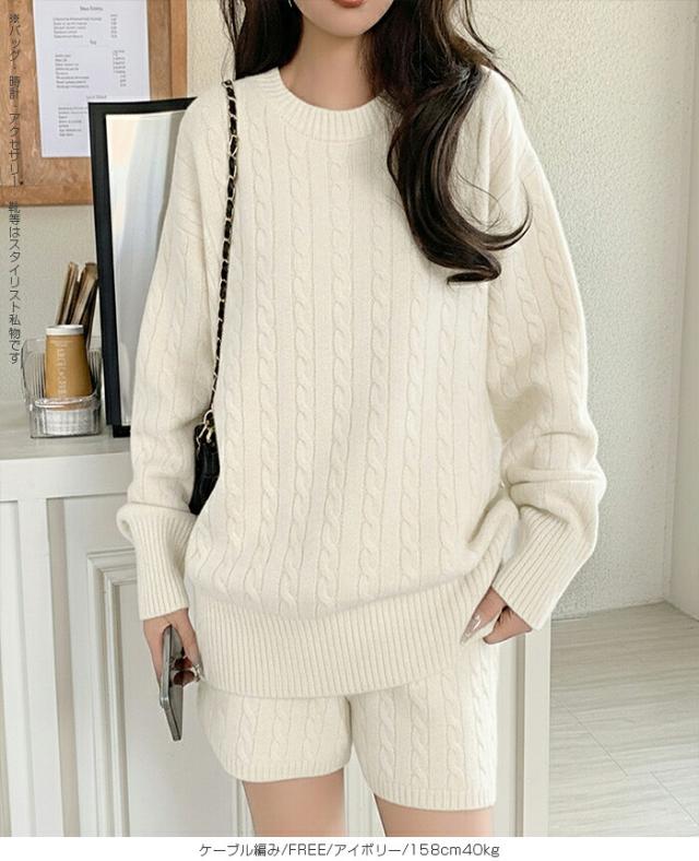 1,500円OFFクーポン!ニットセットアップ レディース セーター&ショートパンツ 2点セット ゆったり着回し抜群 大人カジュアル◎FREEサイズ 上下セットアップで即お洒落が叶う! 体型カバーも叶う魔法のニット 長袖 オーバーサイズニット 春新作 trend_nit ●即納●