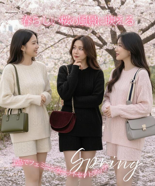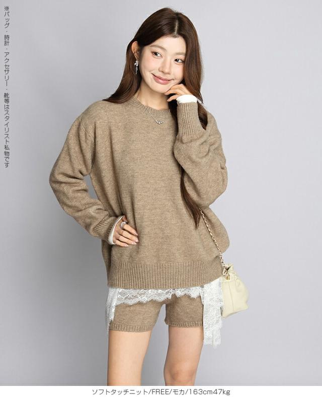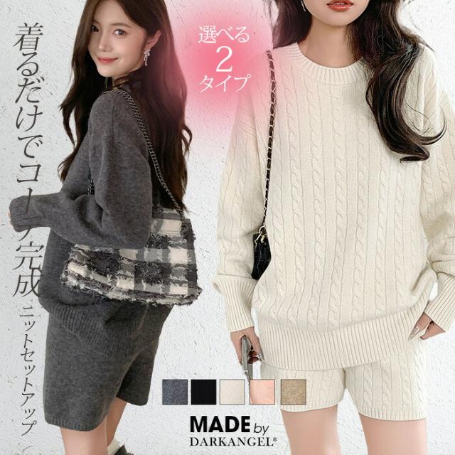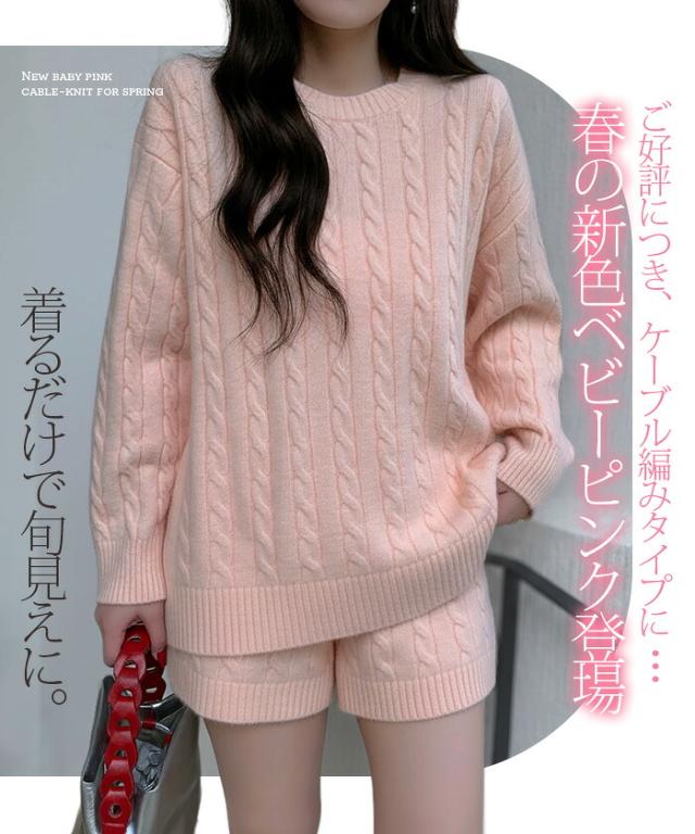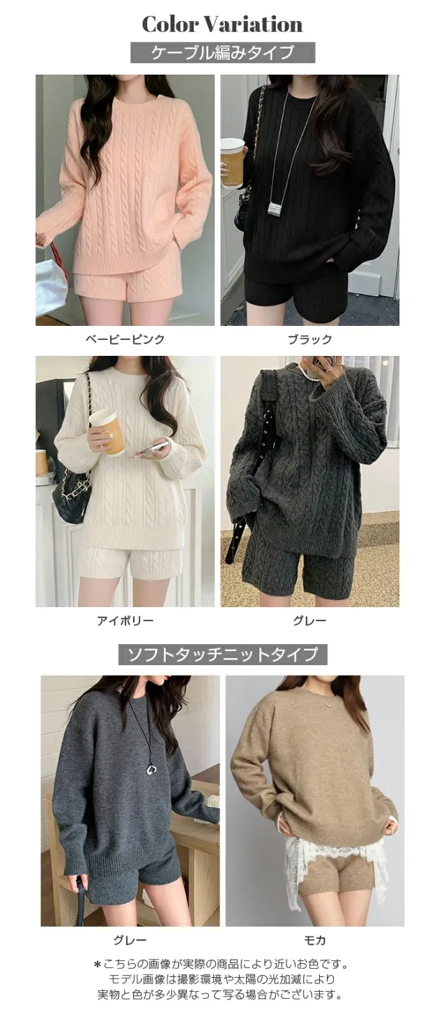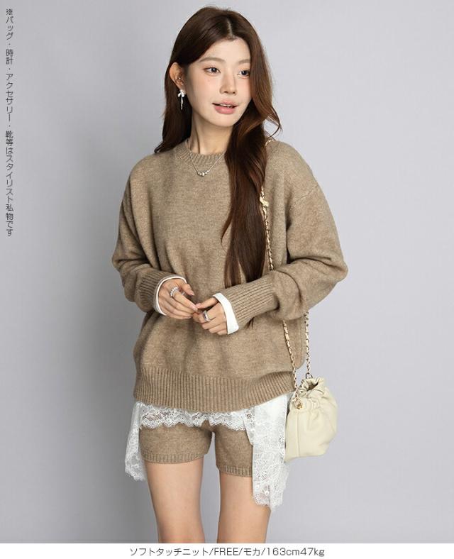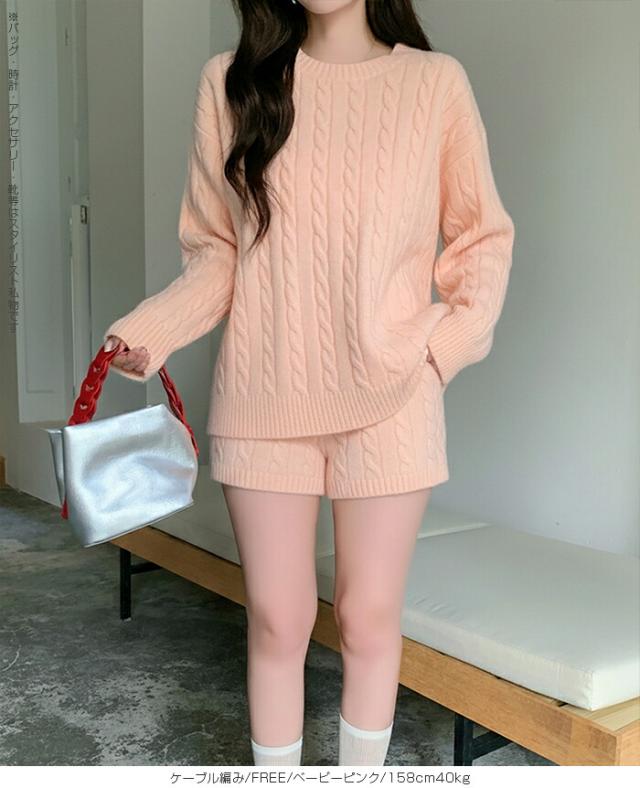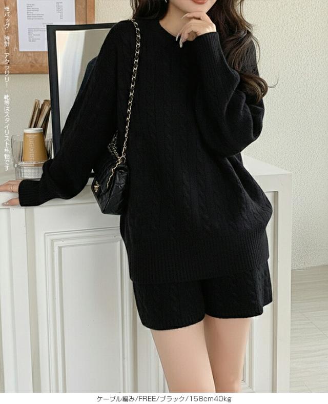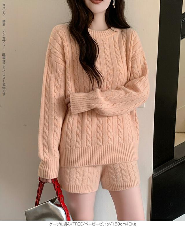 1,500円OFFクーポン!ニットセットアップ レディース セーター&ショートパンツ 2点セット ゆったり着回し抜群 大人カジュアル◎FREEサイズ 上下セットアップで即お洒落が叶う! 体型カバーも叶う魔法のニット 長袖 オーバーサイズニット 春新作 trend_nit ●即納●