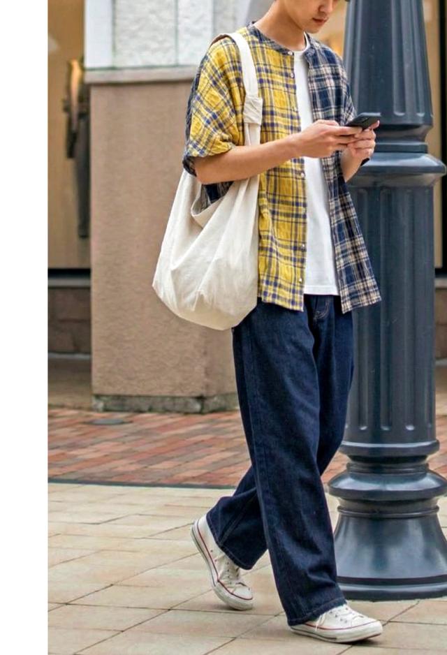 細やかなチェック柄が奥行きを生み、カジュアルながら落ち着いた印象を演出します。