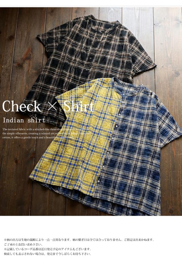 【予約:3月下旬納期】チェック柄 シャツ メンズ 半袖 インド綿 前開き 送料無料・(500)メール便可 春新作