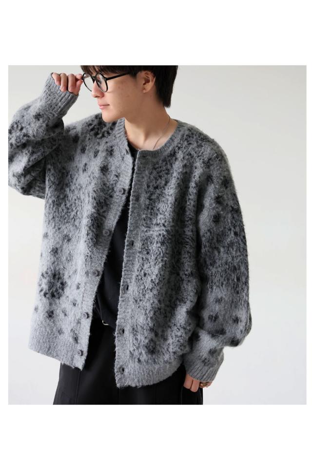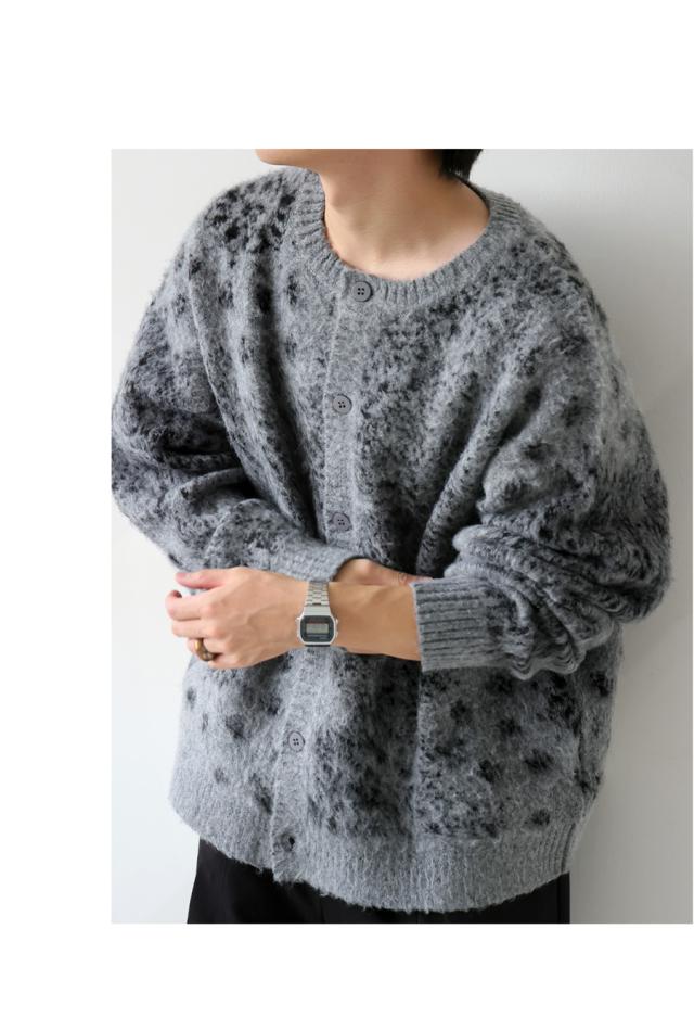 za-00287z 起毛ニット 丸襟 クルーネック ゆったり 体型カバー ふんわり 軽い 着心地 柄編み 上品 おしゃれ 前開き 羽織り ボタン 長袖 防寒 暖かい モノトーン ユニセックス