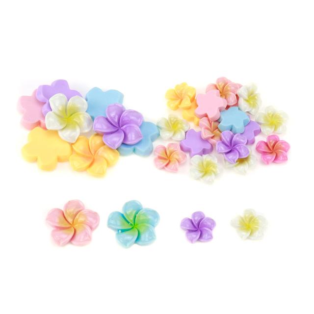 HEVSTIL 30個 ランダムミックスカラー ポリマークレイ プルメリアフラワービーズ トロピカルフラワー 樹脂チャーム プルメリア フラット