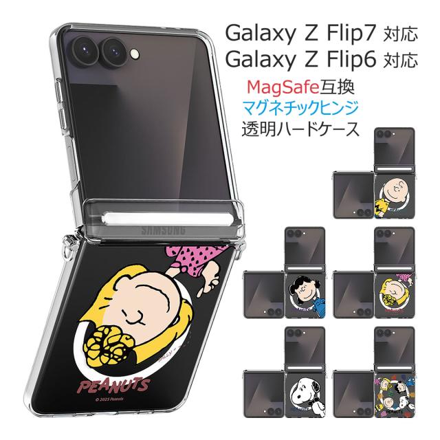 [受注生産] 送料無料(速達メール便) Snoopy Hello Friends Z Flip Auto Hinge Magnetic Clear Hard ケース MagSafe互換 Galaxy Z Flip7 FE Flip6