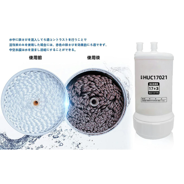 ろ材の種類:中空糸膜、イオン交換繊維、活性炭、不織布