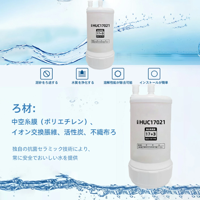 【即納】据置型 ビルトイン浄水器 HUC17021 交換用浄水カートリッジ 高性能互換品 17+3 物質除去 MOTRA 交換用 対応互換品 交換1年間利用 安心し飲める水 90日品質保証 【レビューで獲得 安心の180日】