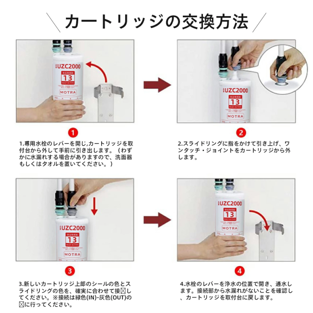 カートリッジ取替時期の目安:12か月(1日20L使用した場合)
