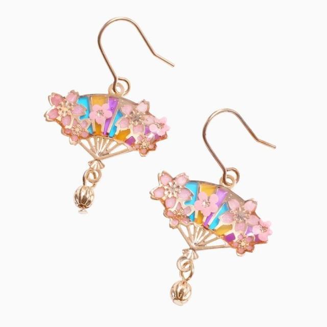 春の喜びをお祝いするような扇子から 桜が溢れ出すゆらゆら揺れてかわいい 縁起の良いピアスです。