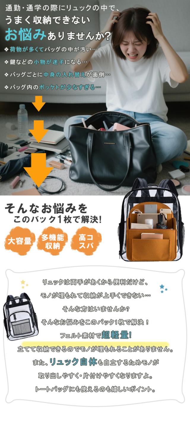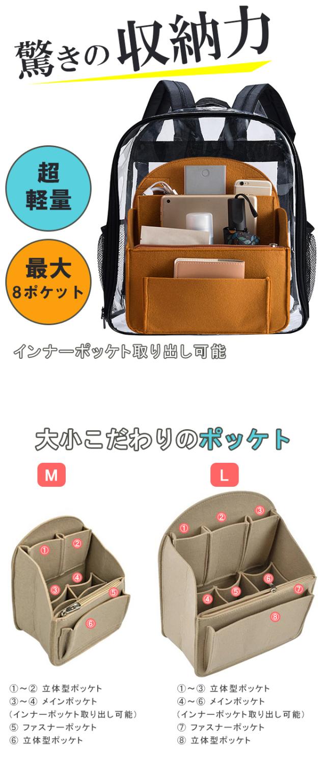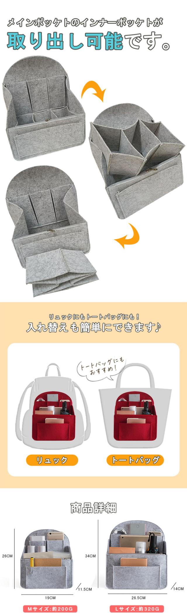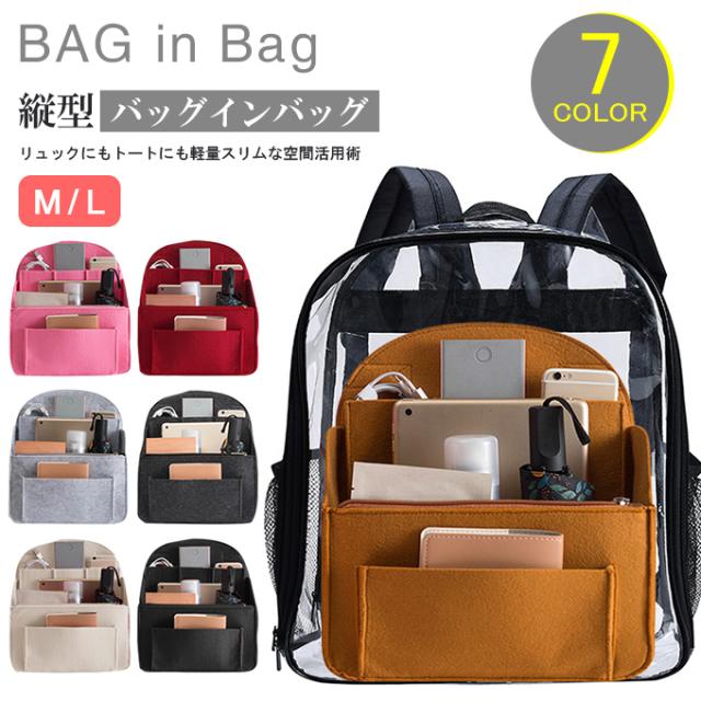 バッグインバッグ フェルト リュック 大きめ 縦型 収納 整理 整頓 自立 軽量 軽い 大容量 8ポケット 縦 トート 大きい インナーバッグ バッグオーガナイザー 仕切り ポーチ プレゼント ギフト メンズ レディース 男女通用