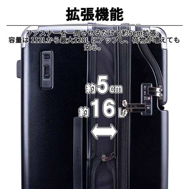 【送料無料】TRAVELIST レスト 76-25210 LLサイズ BOXタイプは、長期旅行や海外出張に最適な大容量モデル。拡張機能で112Lから128Lまで収納力をアップできます。