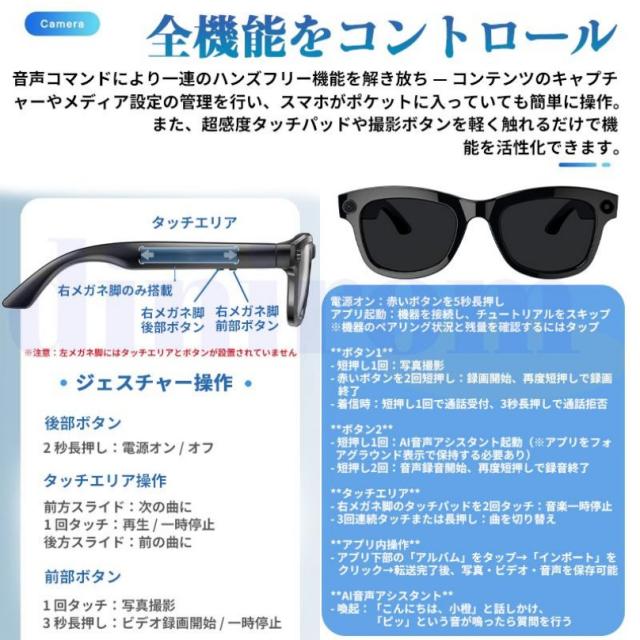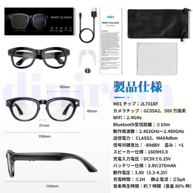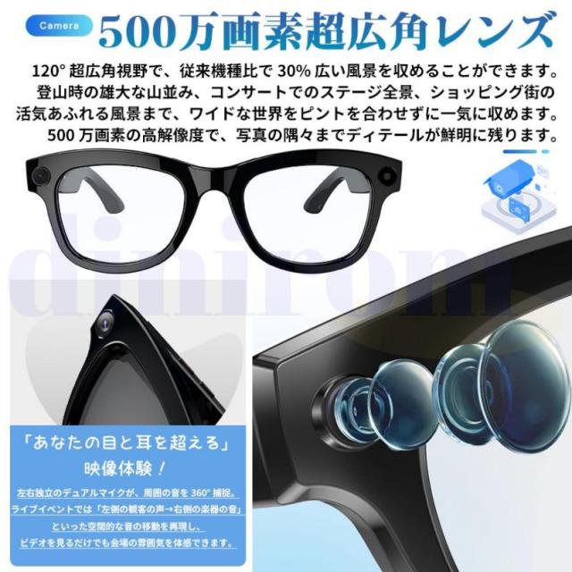 ★収納ケース無料差し上げ★新世代!スマートグラス カメラ付き 録画 録音 映像 スマートメガネ iPhone 眼鏡 音楽再生 通話可能 Bluetooth5.3 日本語説明書付 近視用 サングラス マイク内蔵 AIワイヤレスメガネ 500W解像度 アプリ記録 高音質