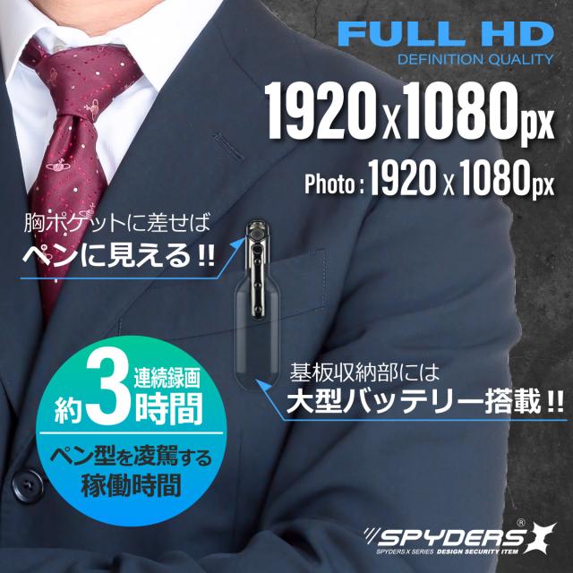 スパイダーズX ペンクリップ型カメラ P-380 ボイスレコーダー機能 64GB内蔵