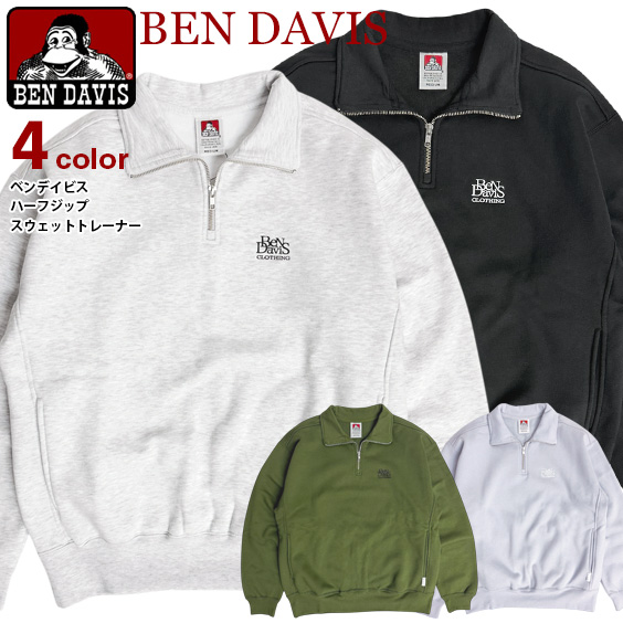 BEN DAVIS スウェット ベンデイビス 刺繍 ハーフジップ トレーナー 裏起毛 襟 スエット ハイネック メンズ ユニセックス BEN-2238
