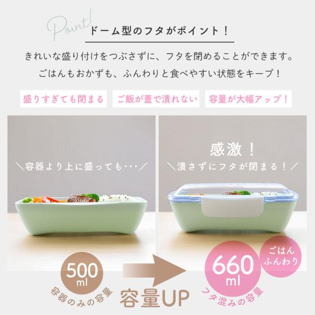 弁当箱 500ml 電子レンジ対応 食洗機対応 日本製 抗菌仕様 クラーテ ランチボックス ドーム型 洗いやすい お弁当箱 仕切り 一段 大人 女子 オフィス 通勤 通学 おしゃれ 国産 パステルカラー くすみカラー かわいい 1段