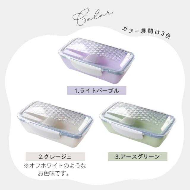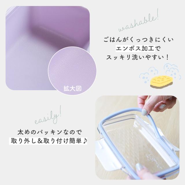 透明感のあるクリアなフタにカラーパッキンが縁取られた、シンプルだけど華やかさもある上品なランチボックスです。