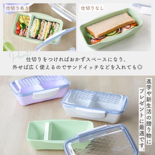 仕切りを付ければおかずスペースに、外せば広く使えるのでサンドイッチなどにも◎