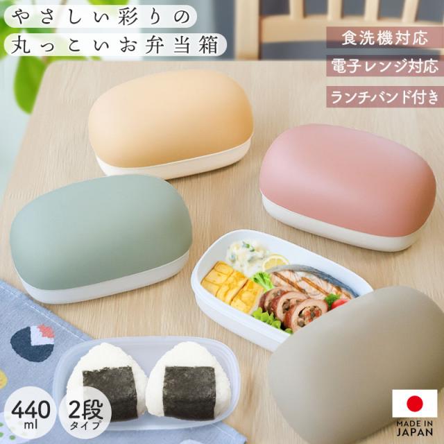 弁当箱 440ml 2段 電子レンジ対応 食洗機対応 日本製 やさしい彩り 長角おにぎり ランチボックス ドーム型 くすみカラー 洗いやすい お弁当箱 ニ段 ミニサイズ 小さめ 大人 子ども 子供 キッズ 通勤 通学 おしゃれ 国産