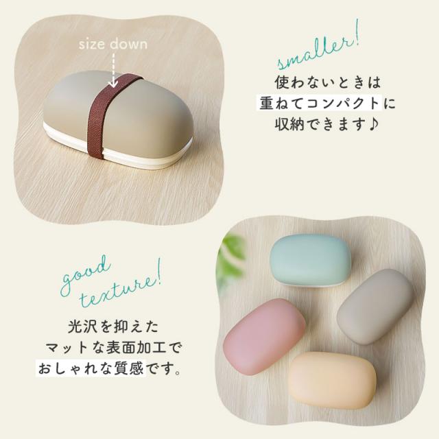 美しい日本の伝統色に、くすみカラーを掛け合わせたモダンなデザインのランチケース。 コロンとした可愛らしいフォルム、落ち着いたマットな質感のくすみカラーがランチタイムに彩りを添えてくれます。 上段はドーム型になっていて、小さめのおにぎり2つくらいを潰さずにふっくら入れられます。もちろん小さめなパンもOK♪果物やデザートをのっけても◎ 下段は少量のおかずやサラダなどを入れられます。シールフタ付きなので汁漏れせず、安心してお使いいただけます。 ランチバンドが付いていますので、しっかり固定して持ち運びできます。 角が丸いので隅までスッキリきれいに洗えます。 使わないときは重ねてコンパクトに収納できます。 光沢を抑えたマットな表面加工でおしゃれな質感です。 シールフタを外せば、電子レンジであたため直しができます。(加熱時間1分以内) 本体とフタは食洗機・乾燥機対応!忙しい毎日に優しい仕様です。 進学や新生活の贈り物に♪ |