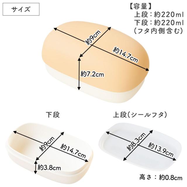 幅14.7×奥行9×高さ7.2cm 上段(シールフタ):幅14.7×奥行9×高さ3.8cm 下段:幅13.9×奥行8.3×高さ0.8cm |