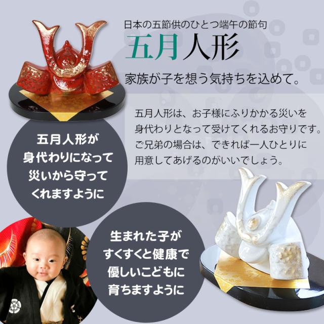 輝かしい未来へ祈りを込めた五月人形。 男児の成長の願いを込めて、ぬくもりを感じる五月人形です。 特別な日となる端午の節句を、伝統を残しつつ可愛らしい人形が個性豊かに彩ります。 男の子の健やかな成長と健康を祈念する、縁起の良い五月人形です。 ちょっとしたスペースにも手軽に置けて楽しめます。 可愛らしいコンパクトサイズですので、飾り場所を悩むことなく毎年気軽に出すことができます。 手作りの陶器製の五月人形は品が有りそして、親しみやすく飾りやすいサイズ感も人気です。 本格的な五月人形は、5月5日を過ぎたら後片付けに手間がかかりますが、こちらはしまうのも簡単です。 お部屋に可愛らしさをプラスしてくれる、インテリアのようなおしゃれなデザインの五月飾りはどんなお部屋にも馴染みます。 手のひらに乗るようなコンパクトサイズですが、細工が細かく丁寧な仕上がりです。 懐かしいぬくもりもあり、一生楽しめる陶人形の五月人形をぜひ飾ってみてください。 心を込めた贈り物にもご自宅用にも好適です。出産祝いや小さなお子様のいるご家庭へのプレゼントとしても喜ばれています。 また、日本文化を海外の方に紹介するため、海外へのお土産としても人気です。 5月5日のこどもの日には五月人形を飾るご家庭が多いと思います。 五月人形は、お子様にふりかかる災いを身代わりとなって受けてくれるお守りです。 ご兄弟の際は、できれば一人ひとりに用意してあげるのがいいでしょう。 ただ、飾るスペースの問題もあるので、長男が【鎧飾り】なら次男には【兜飾り】と分けたり、【子供大将・金太郎飾り】や【武者人形】を添えるなどして、お祝いをしてあげてはいかがでしょうか。 また、現代では省スペースで気軽に飾ることができるコンパクトな五月人形が人気です。 飾る時期は地域によって違いがありますが、一般的には春のお彼岸すぎから遅くとも4月中旬までに飾ります。 しまう時期は、天気のいい乾燥した日を選んで5月中旬までにはしまいましょう。 端午の節句は菖蒲の節句とも呼ばれ、鎧・兜・刀・武者人形や金太郎を模した五月人形を室内に飾り、庭前にこいのぼりを立てて男の子の成長を祝い、健康と立身出世を祈るお節句です。 お子様の健やかな成長を願う気持ちが込められているのです。 |