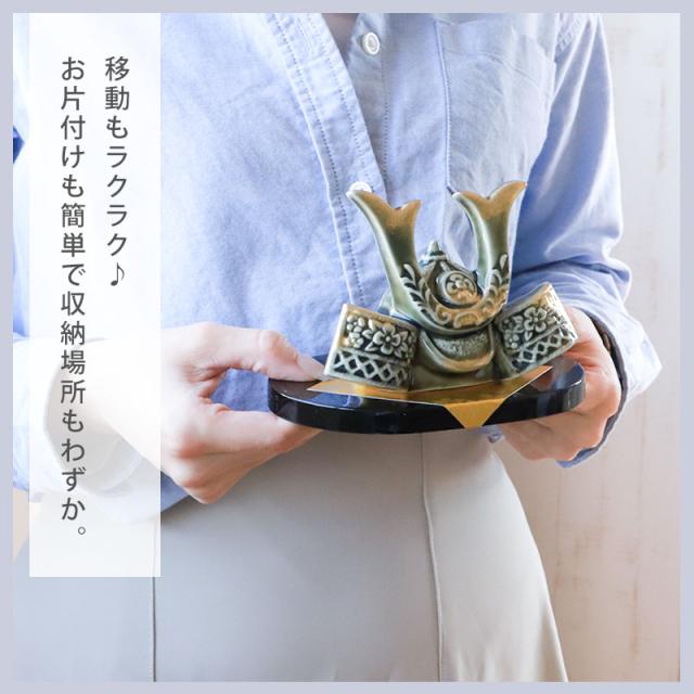 五月人形 窯変兜飾り 平飾り コンパクト おしゃれ 兜飾り かっこいい 端午の節句 平飾り こどもの日 子供の日 陶器 初節句 節句飾り 省スペース マンション アパート インテリア 置物 人形 和雑貨 海外土産 白 緑 赤 黒 おしゃれ 送料無料