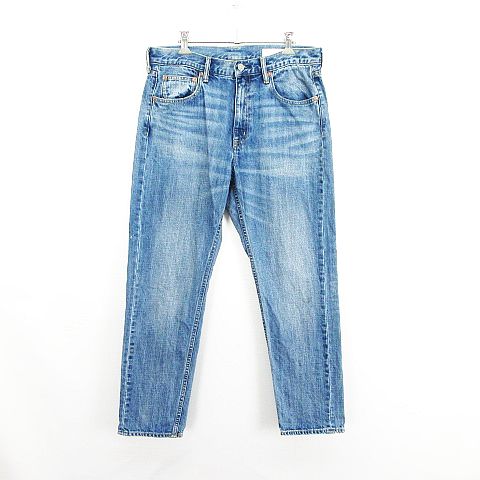 【中古】グリーンレーベルリラクシング デニム ジーンズ テーパード ユーズド加工 44 ブルー ※EKM レディース