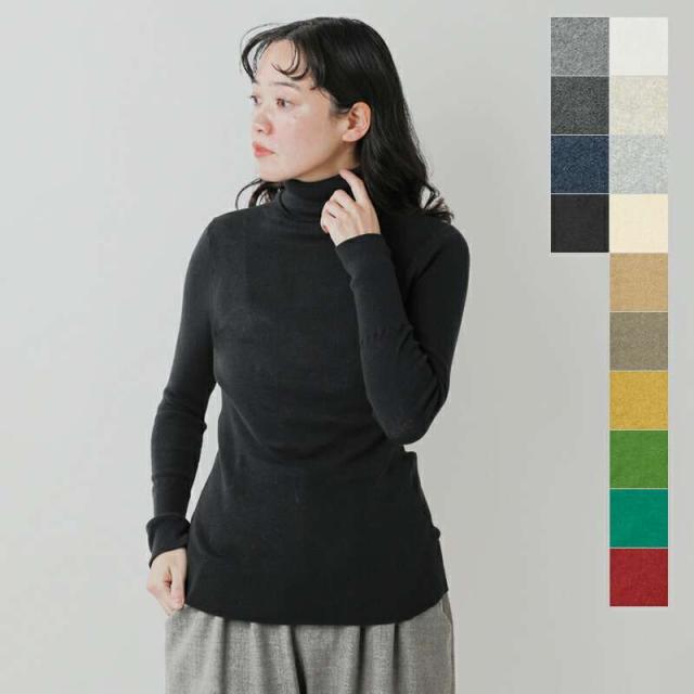 tumugu(ツムグ)より、コットンリブニットタートルネックプルオーバーのご紹介です。綿100%のコットンニットで仕立てた、チクチク感ゼロの快適なタートルネックニット。細身のシルエットながらも、伸縮性に優れたニット素材を使用することで、無理なく体にフィットし、窮屈さを感じにくい嬉しい仕様になっています。すっきりとしたシルエットで、重ね着してもゴワつかないのが何よりも嬉しいですよね。豊富なカラー展開でどんなスタイルにも馴染みます。 リピーターさんも多い、往年の人気アイテム。チクチク感のない優しいコットンニットなので、デイリーにも気兼ねなくお使いいただけます。首元は暖かくしたいけど、チクチクは苦手…という方におすすめの一枚です。ベーシックアイテムこそ、安心できるいいものを。 やや長めのタートルネックで、折り返してもそのままくしゅっとさせても可愛い♪お気に入りのトップスを重ねて、チラリと見せるとこなれた雰囲気に。明るめカラーを選ぶと、差し色になって程よいアクセントを効かせてくれます。 裾と袖口はさりげない切り替えがあしらわれシルエットを整えます。