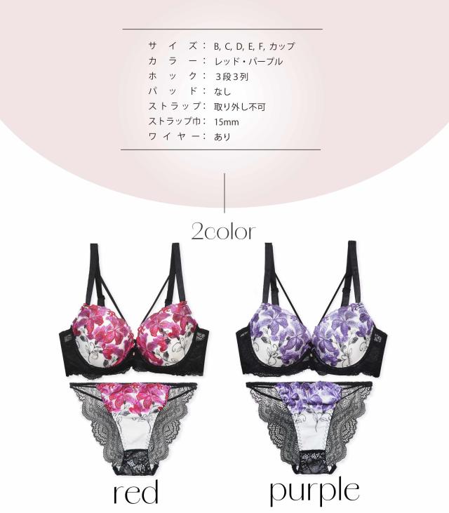 商品名(商品番号):下着 上下セット B85-F100 グラマーサイズ ストリング 刺繍 レース 脇高 フラワー ブラジャー&ショーツセット(J-8004r-EF)