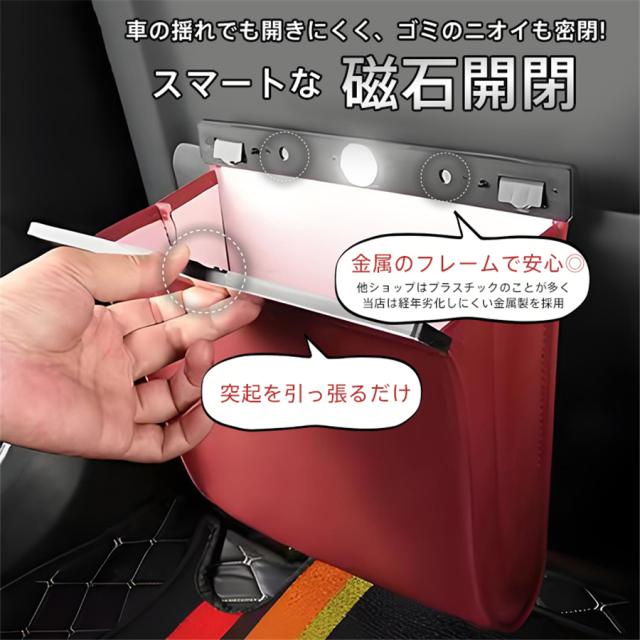 折りたたみ式 PUレザー 収納ボックス ダストボックス フック式 磁石付き コンパクト スリム 省スペース 防水 おしゃれ 大容量 倒れない 車内 便利グッズ 多車種対応 簡単設置 小物入れ 収納ケース 車載用品