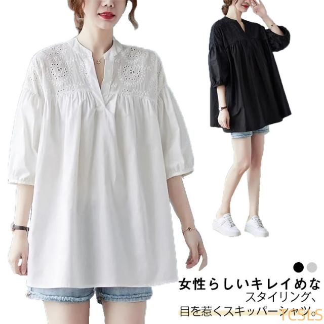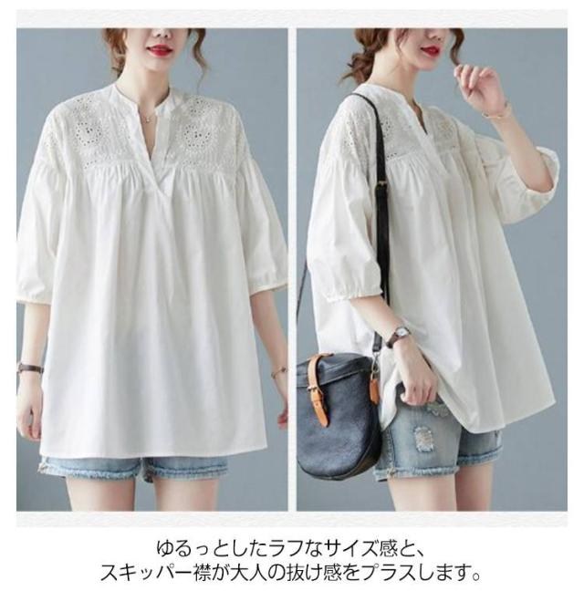 | 女性らしいキレイめなスタイリング、目を惹くスキッパーシャツ。 立体感のある花柄レース刺繍を使用して、爽やかでキュートな印象。 ゆるっとしたラフなサイズ感と、スキッパー襟が大人の抜け感をプラスします。 深めに開いたVネックはネック周りをスッキリ見せて、小顔効果もアップ。 七分袖のバルーンスリーブで、可愛く気になる二の腕もカバー。 ゆったりシルエットで、体系カバーも◎年齢問わず、幅広く使える優秀アイテム。 | |